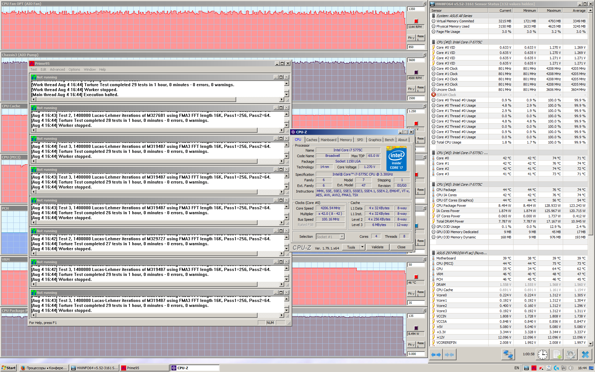 Короче, 1час prime95 small fft выстоял на 4.2ГГц@1.270в, можно пробовать снижать вольтаж даже