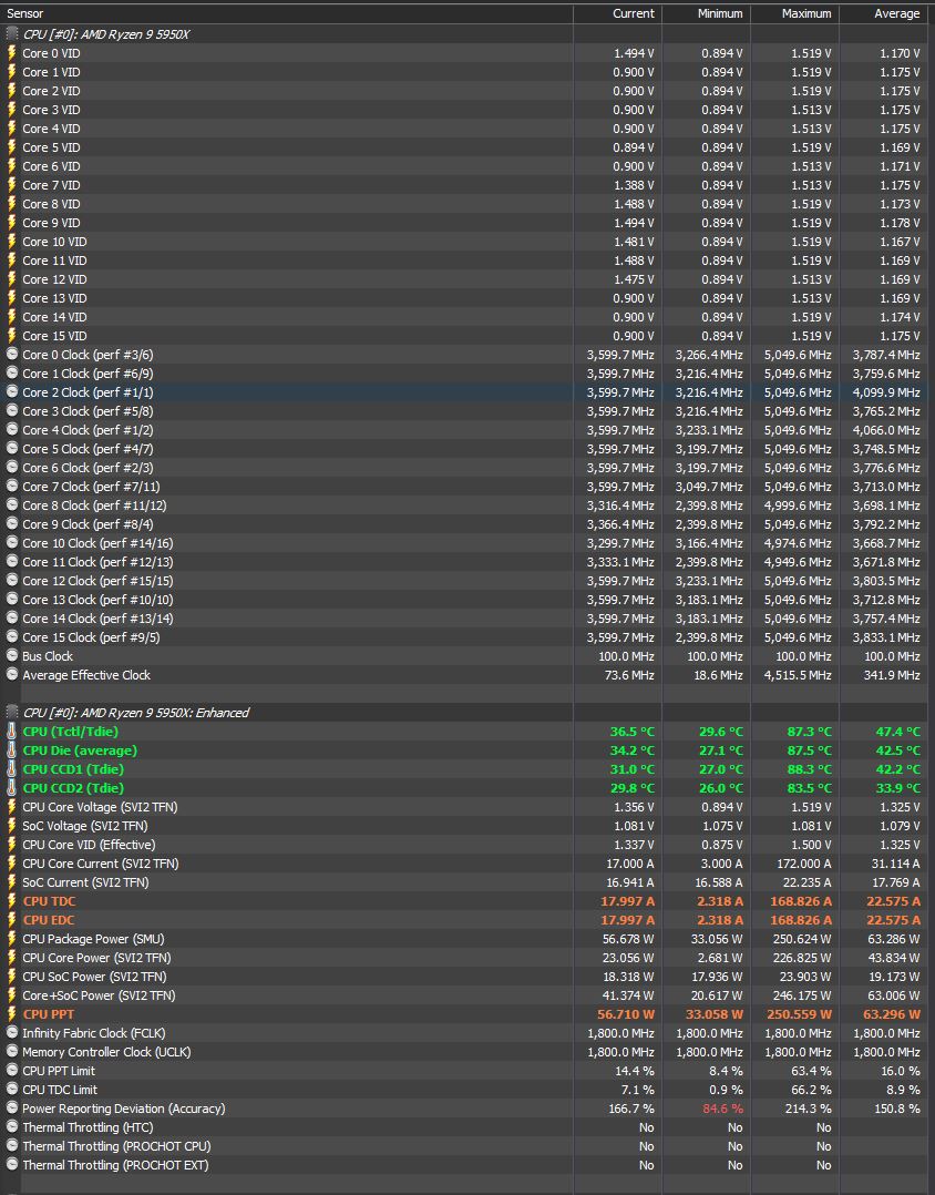 При этом методе игнорируется лимит EDC, лимит TDC настраивается исходя из возможностей VRM, какой ток в амперах материнская плата может максимально выдать не перегревая VRM, лимит PPT это максимальное потребление процессора, особенно актуально если система охлаждения очень инертная. 5900X/5950X упрутся в температурный лимит в 90°С на самом горячем CCD, 5600X/5800X в 95°С, эти значения можно уменьшить при помощи настройки Platform Thermal Throttle Limit. Последние 5°С до этого лимита дают приличные пенальти к бусту.