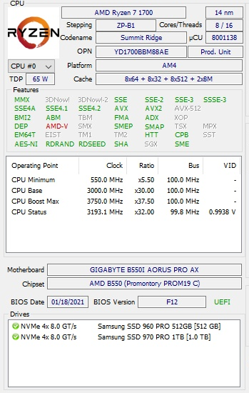 Ryzen 1700 на B550i AORUS PRO