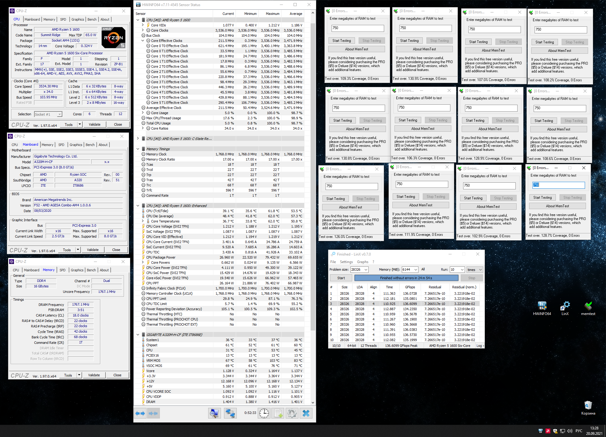 Процессоры AMD Ryzen 1000-й серии (Summit Ridge\Zen\14nm\AM4) #17484080 А я продолжаю насилие) Продана была вчера gigabyte b450m s2h (aorus на очереди) и куплена с уценки без всего (только задняя планка) - gigabyte a320m h Ест-но я стал тестить разгон памяти - тут всё плохо, выше множителя х34 оно не едет, ну а процессор на А320 чипсетах не гонится. Но гонится шина) 104Мгц и получаем 3535Мгц и по цпу и по памяти) анкор 1700мгц