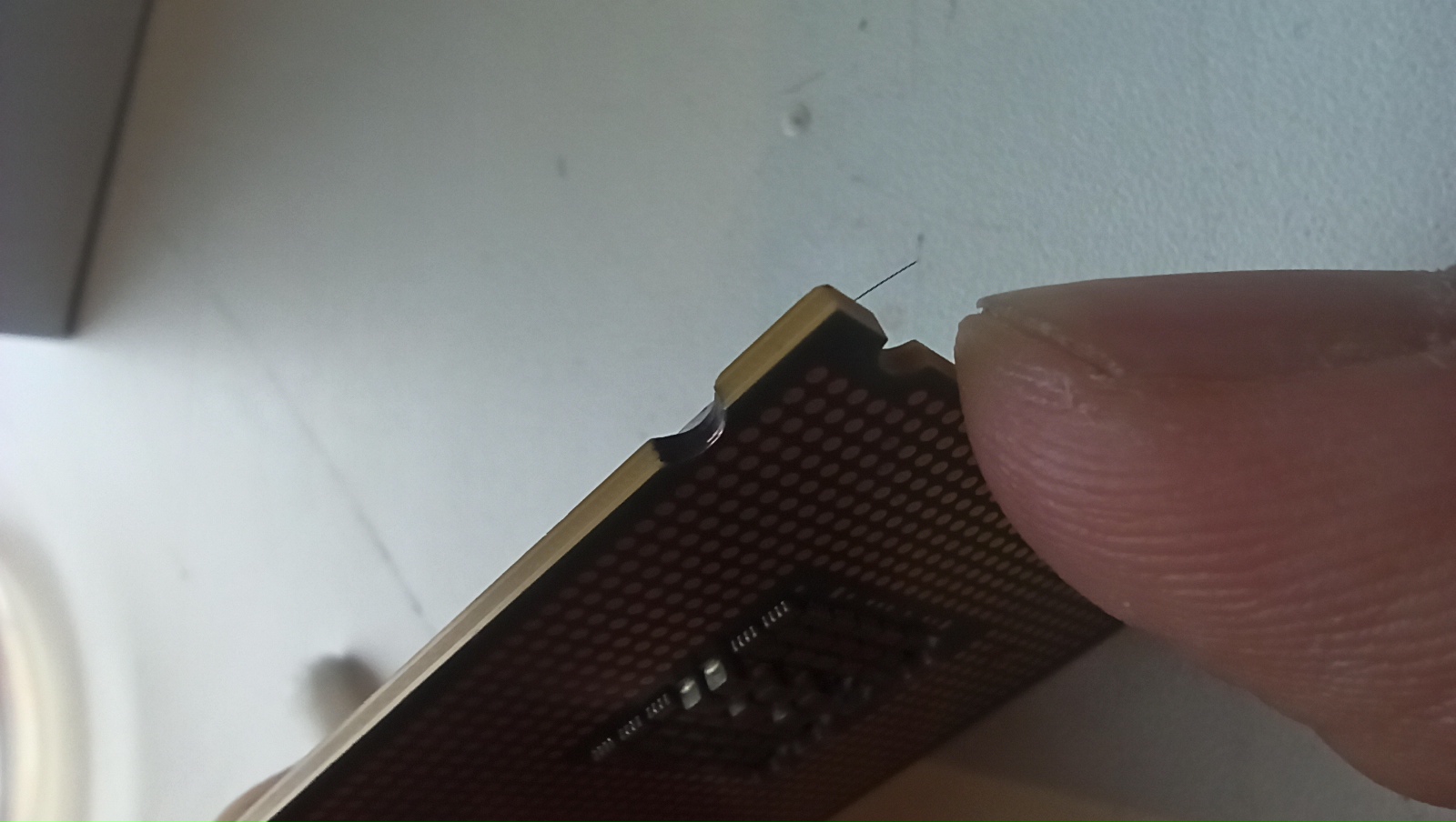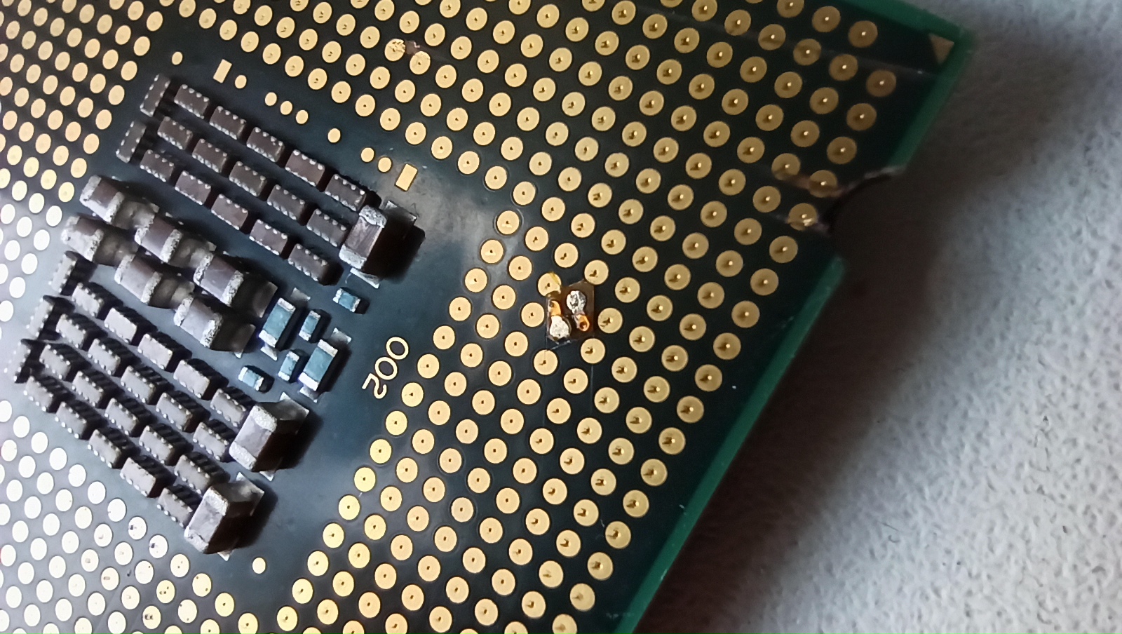если их пропилить поглубже, то потом проц будет люфтить в сокете так, что придётся ловить правильную посадку. оно надо? надфилем, мелким надфилем, нужно по чуть-чуть, нежно пройтись по пропилам для того, чтобы снять КЗ. потом ещё и протереть-промыть чем-нибудь не помешает, да хоть спиртом. подложка многослойная, возможно при пропиливании были закорочены соседние слои меди, так вот надо попытаться эту закоротку убрать. методу я описал, вперёд и с песней...
