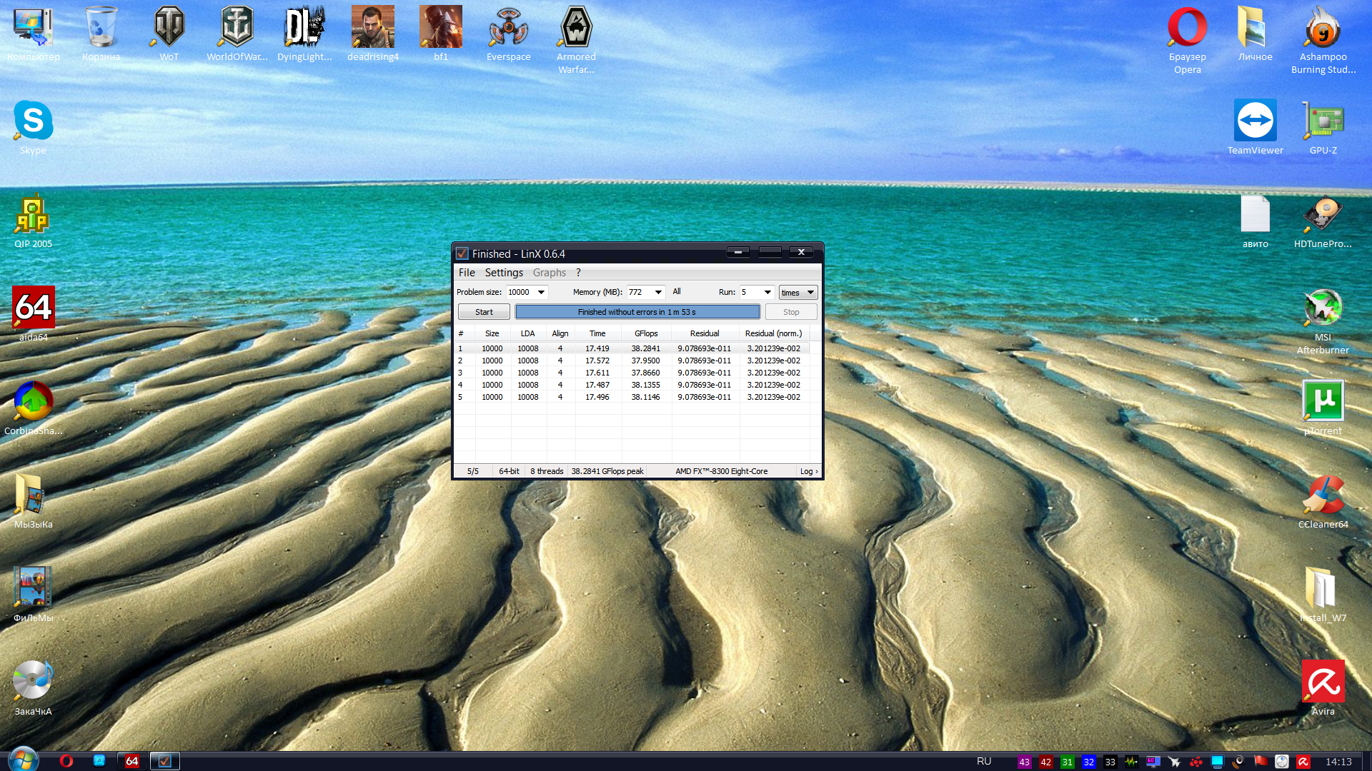 Ага,боюсь что если выставить нормально настройки(а это при наличии 8гб памяти в настройках поставить 6144мб),за 5минут на частоте 4200 он не успеет сделать ни одного прогона (или 1,около 4мин вроде прогон будет,но это пустая трата времени) У тебя памяти сколько? 4гб? почему ты ставишь объем памяти 3гб?