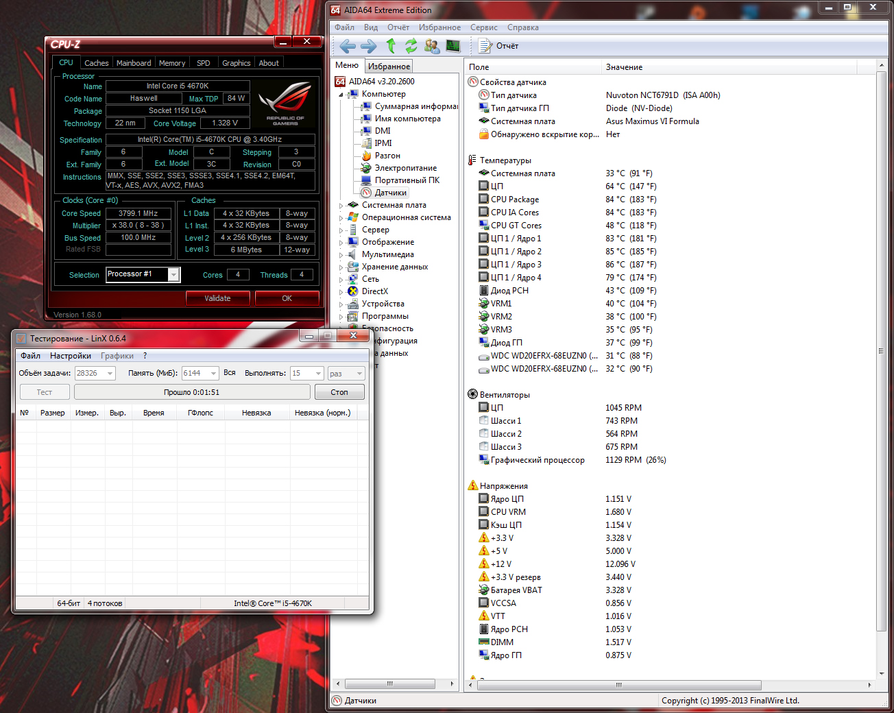 Lumen У меня? Zalman CNPS 10X Performa. Если проц в дефолте, советую выставить руками напряжение, например 1.1V. LinX лучше не гонять с авто-напряжением.