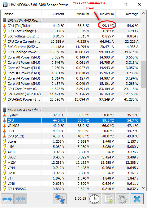 Друзья, прошу вашего совета. Собственно собрал такой конфиг: msi b450-a pro, 2600x(боксовый кулер), 2х8 самсунги оем, 1066 XFX. И вышло как-то очень горячо, ладно видеокарта, которая запускает свои вертелки после 60и градусов(та еще печка, даже страшновато немного), так еще процессор печет. Собирал не для разгона, максимум память погнать, и даже не думал, что в стоке 2600х(с бокс кулером) такой горячий. В общем странные показания температуры в аида, а конкретно ЦП диод - 98-100 *С. Запустил тест в аиде, и кривая температур полезла вверх, дошла где-то до 65 и я остановил, в HWiNFO показывало аж 95-99 *С. Я конечно сунул пальцы куда нужно, ничего не ошпарил, радиатор горячий, прям очень хорошо так прогрелся. С видеокартой в закрытом корпусе баня, видео 70+, проц. почти 70 и это в каком-то овервотче, афтербернером следил. Что за фигня с разными показаниями, ставить башню на проц, менять корпус + оставить боксовый кулер, или нужно все сразу. Вроде как можно вольтаж скинуть, но тут вопрос, а зачем тогда 2600х. В винде режим высокой производительности стоит. Подскажите правильный алгоритм действий, а то как-то печально.
