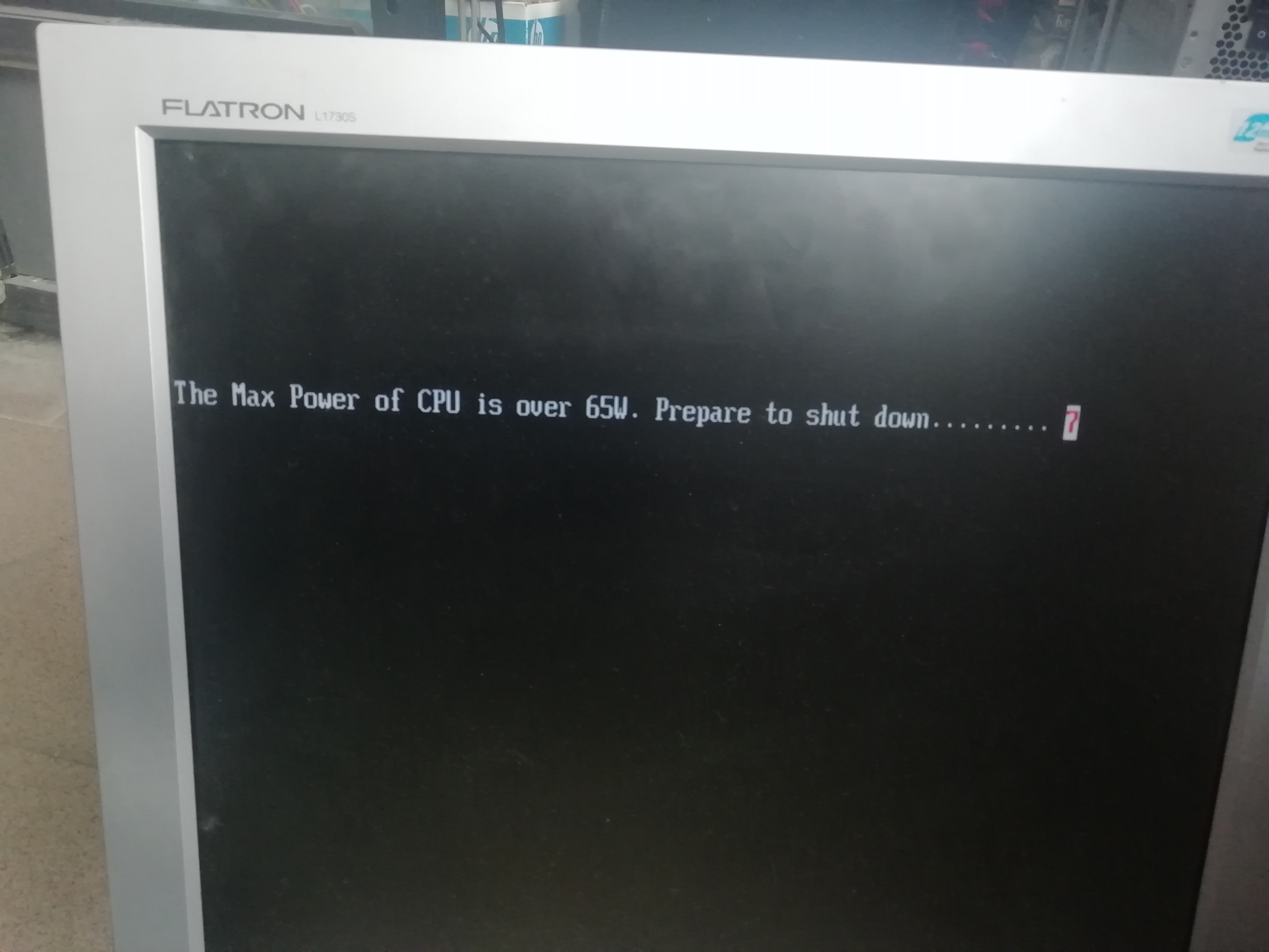 Возникала проблема на Biostar G31D-M7,когда ставишь процессор xeon или quad (6600,8200) больше 65 ватт,появляется табличка об этом и выключается через 10 сек,если нажать F10 в это время,продолжает загрузку в Windows все стабильно работает щас стоит L5420.
