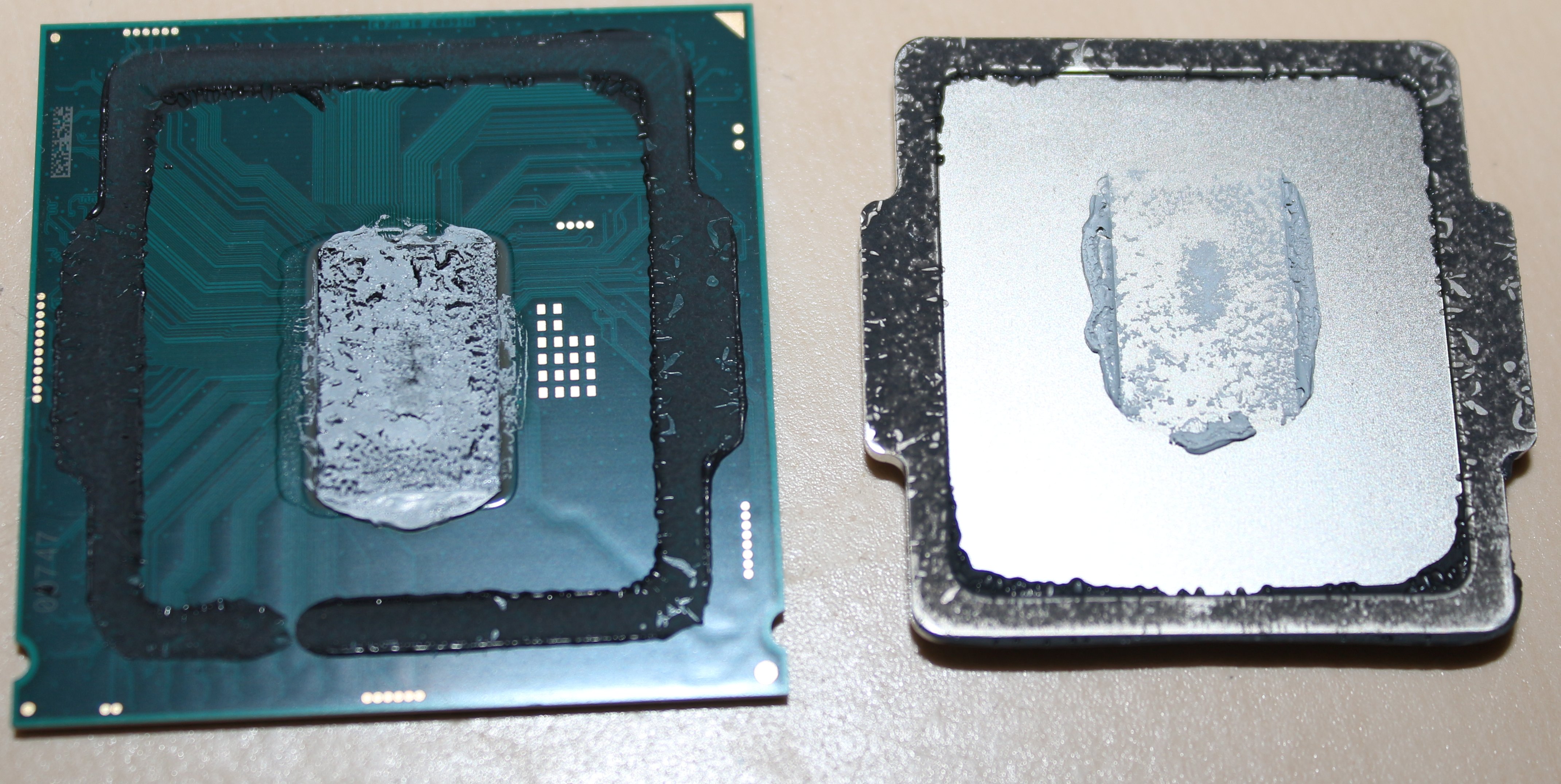 Есть ли примеры скальпирования этих процессоров, что под крышкой? Под крышкой обычная термопаста как и на серийных образцах, с завода идет сухой, со временем своих свойств не теряет. Замена термопасты на ЖМ даёт выигрыш 20-30 градусов.