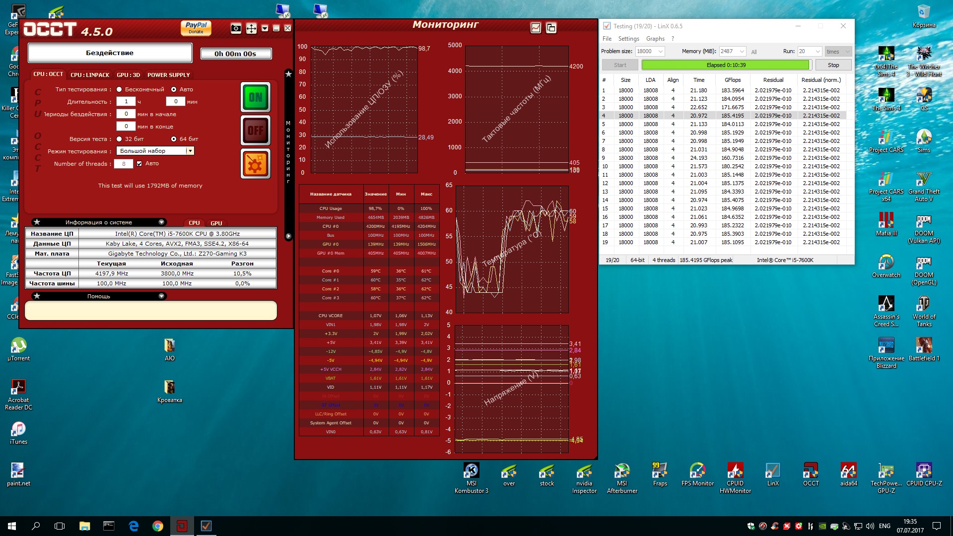 По делу: ОССТ показывает все основные параметры системы в одном окне. В скриншоте прекрасно понятно что 100С нет под бюджетной башней при среднем разгоне, хотя и 88 градусов не есть гуд, на по стоянку использую профиль + 1.25 4.9 (avx 2), чтобы не слушать вой кулера. Пол года - полет нормальный.