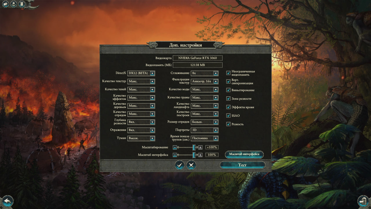 Total War - Warhammer II DirectX 12, ультра, синхронизация, 16х анизотропная, сглаживание и тд тп один скрин - достаточно