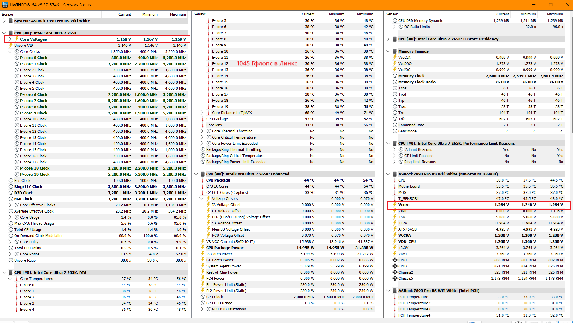 Тут я запутался еще больше) Итак, у нас есть технология DLVR, которая регулирует подачу вольтажа на блоки CPU динамически. Так же, максимальный вольтаж на P-ядра составляет 1.3v, для E-ядер - еще меньше (к слову, в шапке темы, информации о том, какой вольтаж для процессора является номинальным я не нашел). Процессор у меня с даунвольтом относительно стока. Получается, то, что я называл "рандомом" можно отнести к вышеупомянутому DLVR. Но если в HWiNFO64 по мониторингу у меня может проскакивать 1.524v (возможно, иногда выше), выходит, что это DLVR накидывает сверху более 0.2v? Таким образом предел по вольтажу на ядра, озвученный выше, уже не будет иметь значение?
