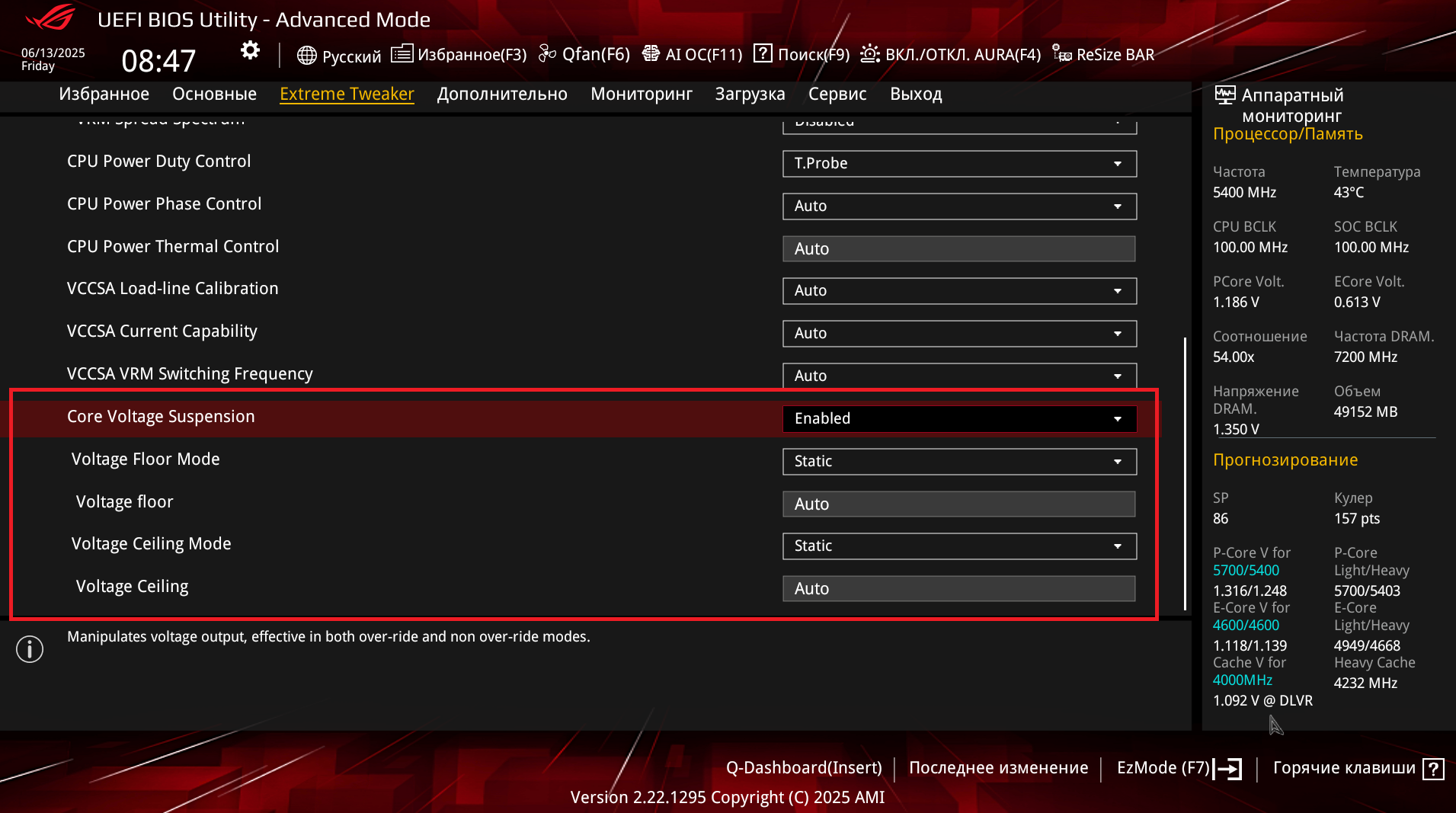 в БИОС появляется окошко с предупреждением, что при выключенном DLVR в блок CPU будет подано повышенное напряжение, и что делать этот стоит на свой страх и риск.