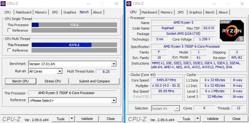 Пока что максимум который удалось выжать из 7500f 5600 грузится но даже для игр нужно уже нормально накидывать вольтаж, не говоря уже о простеньком бенче в cpu-z