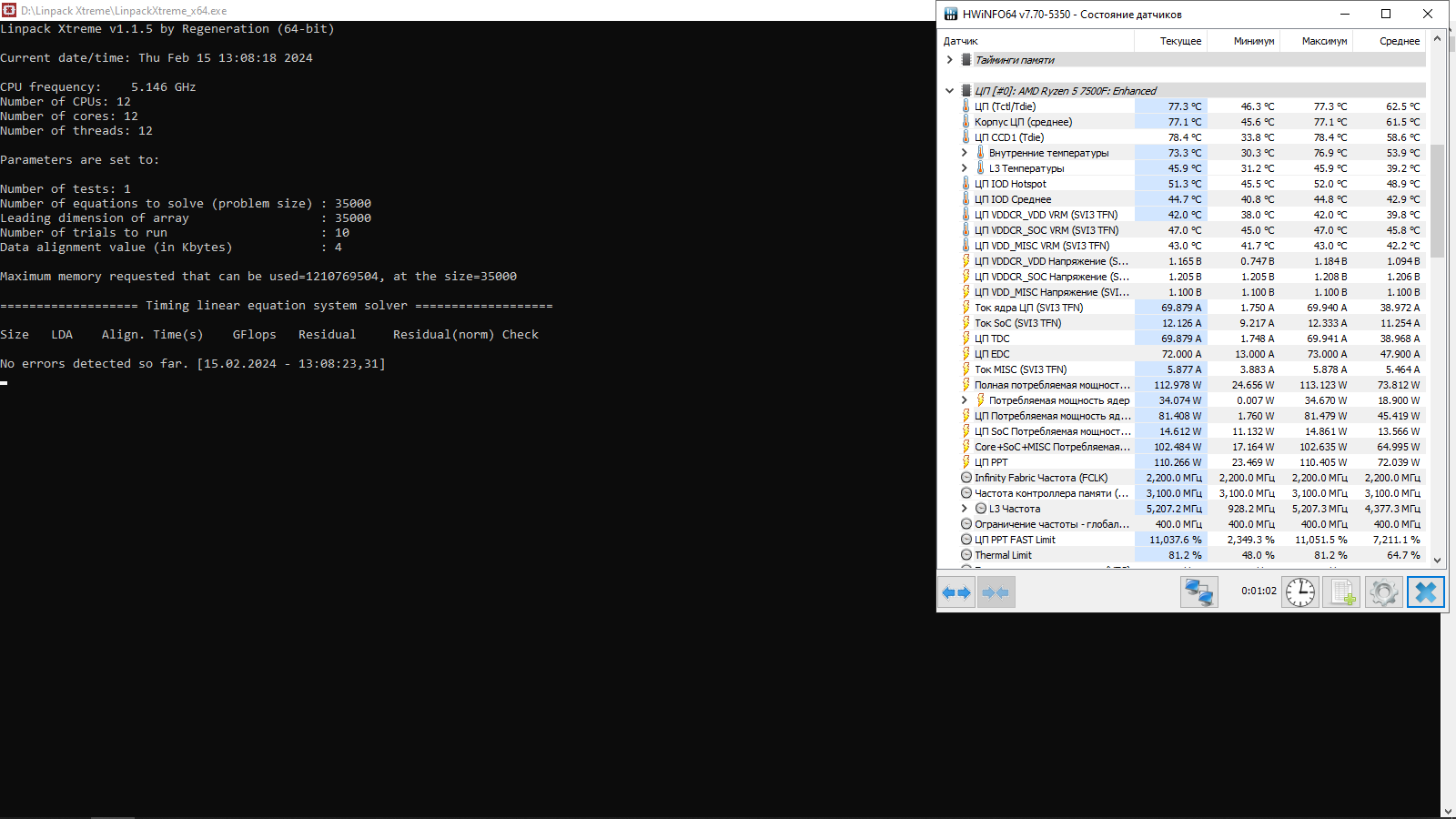 Что он имел ввиду видимо только он сам знает, прицепился к 112w в линпаке, думаю даже не в курсе что на двух одинаковых процессорах с одинаковыми настройками и токи могут отличаться и потребление, есть второй 7500f который на 5300 хавает уже 131 ватт. Лимиты в авто стоят, просто для наглядности выставил максимальные и прогнал еще раз разницы нету