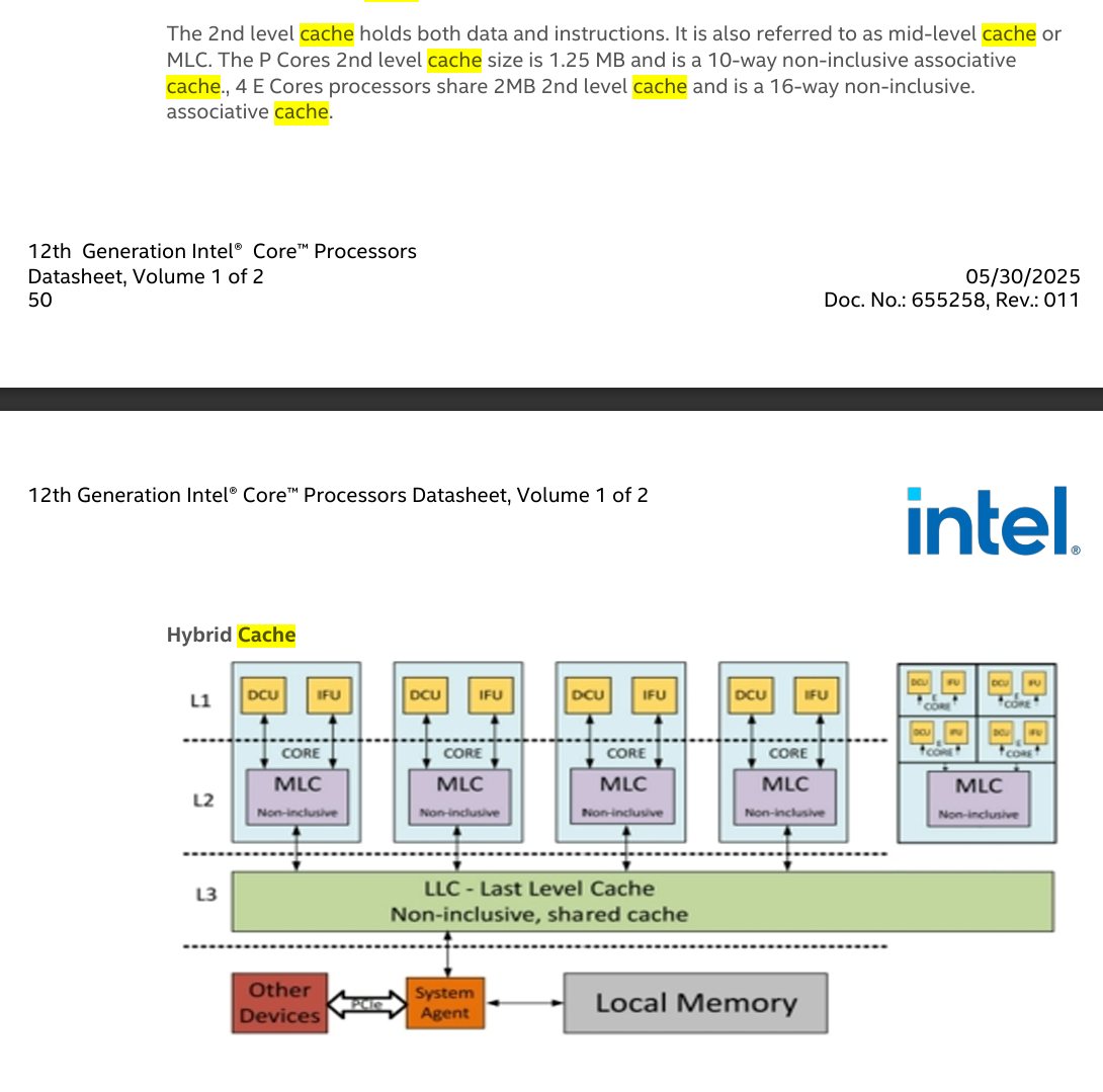 Раз данные не дублируются, L2 расширяет L3 у Интел. Так что всё верно, Интел наращивает L2 вместо L3. У АМД в разы больше L3 у Интел в разы больше L2. Проблема только в том что Интел нарастила L2 в два раза в сравнении с Alder lake. Но как будто не особо им это помогает. При этом Интел резко бустанулся на 12 поколении, L2 увеличился с 512кб на ядро до 1.25МБ на ядро, L3 увеличили в 1.5раза, с 2мб до 3мб на ядро.