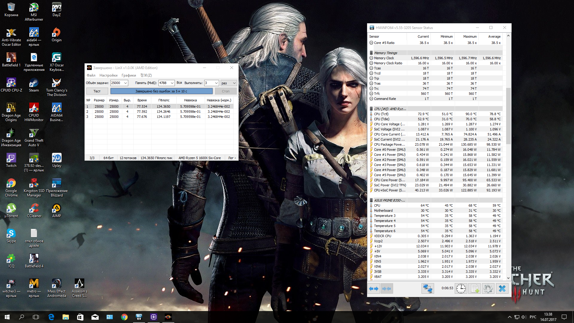 1600= 3850 прогон Prime95 1 час