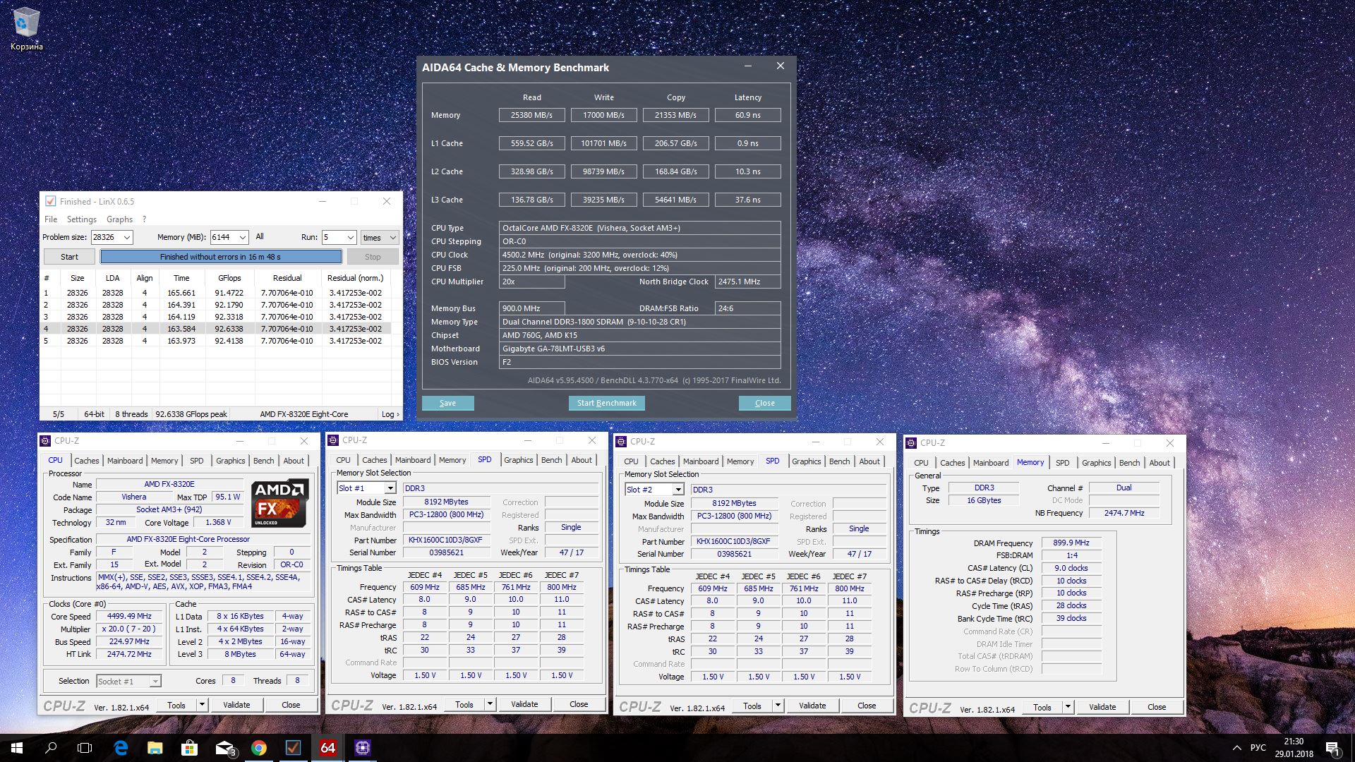 разгон памяти не влияет на результаты линкс. Вроде и результаты нормальные,но так как это ГИГА даже не знаю как к ним относиться... То ли читерит,но слабо,то ли читерит и тут же тротлит(ну не может она 100-ку выбить) то ли реально нормальный результат. Прогони коротенький тест x265_HD_Benchmark_0.1.4.rar