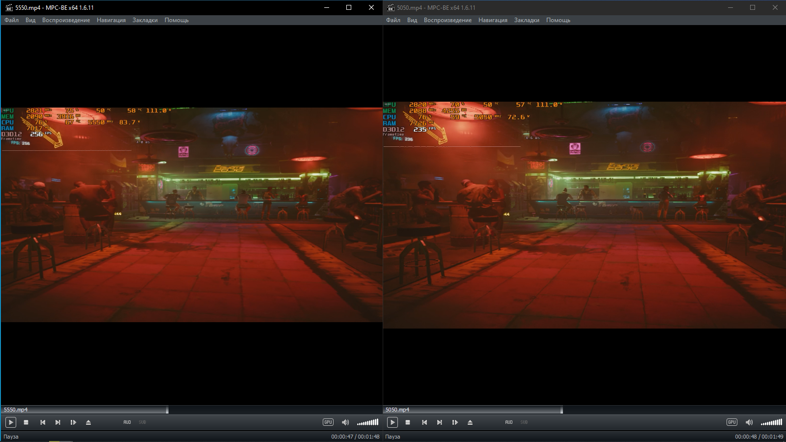 Добавлено спустя 21 минуту 22 секунды: Сделал сравнение по кадрам между 5500 и 5050
