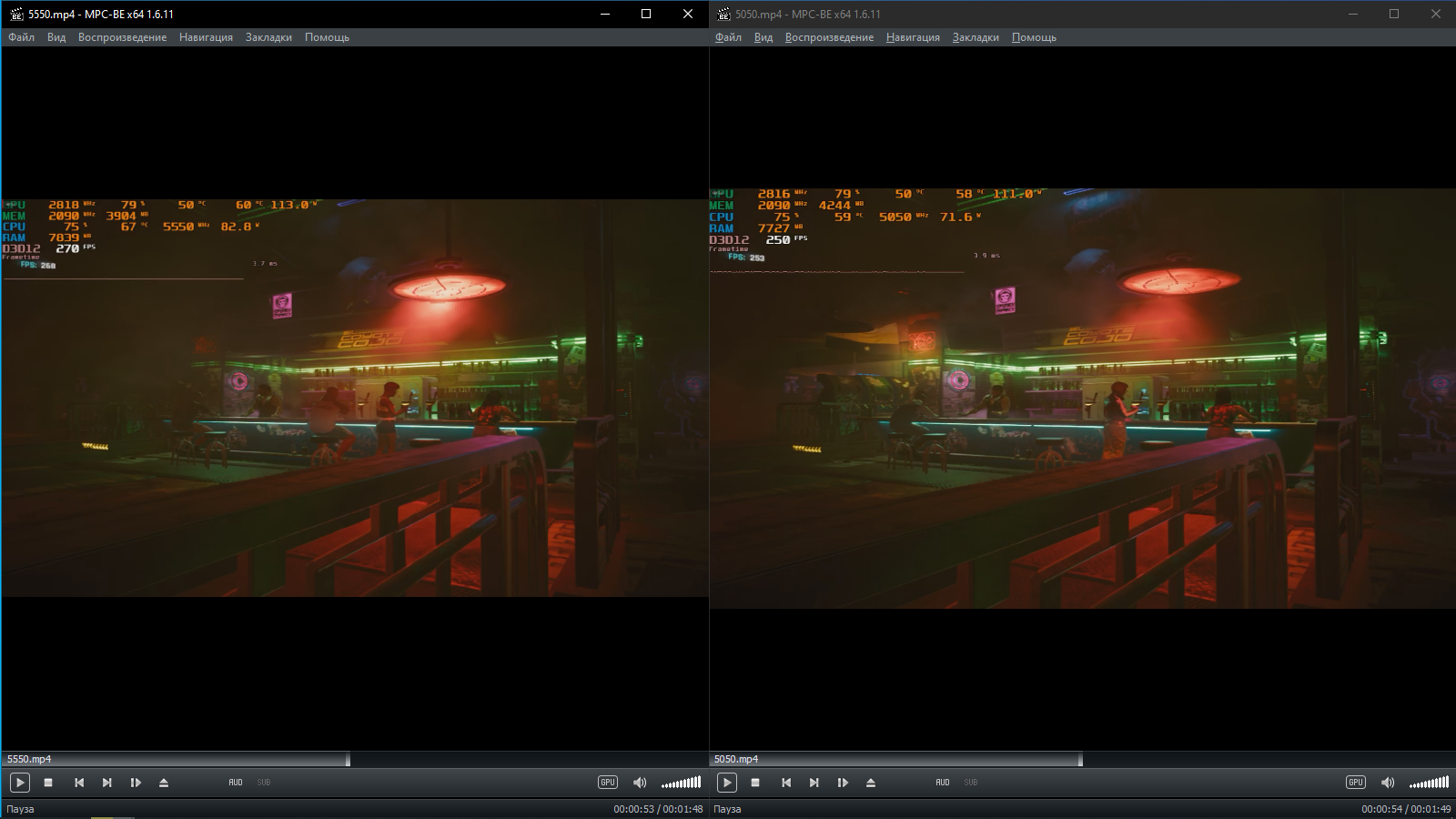 Если разбирать по кадрам разница в 20 по среднему, я по сути вообще не вижу смысла тебе отвечать после того что ты написал выше. Но раз уже ответил то в киберпанке не первый тест делаю и на итог смотреть не стоит а лучше разбирать по кадрам (но даже в нем разница по среднему 14, а 14 потому что в бенче стоит высокий опрос сенсора это можно увидеть если сравнить в исходнике фпс по бенчу и по афтербернеру) Даже если сделаю второй прогон на 5550 и 5050 и разница будет так же в 20 кадров ты же скажешь что ее нету Залил исходники можете посмотреть настройки и сравнить сами https://drive.google.com/drive/folders/ ... sp=sharing