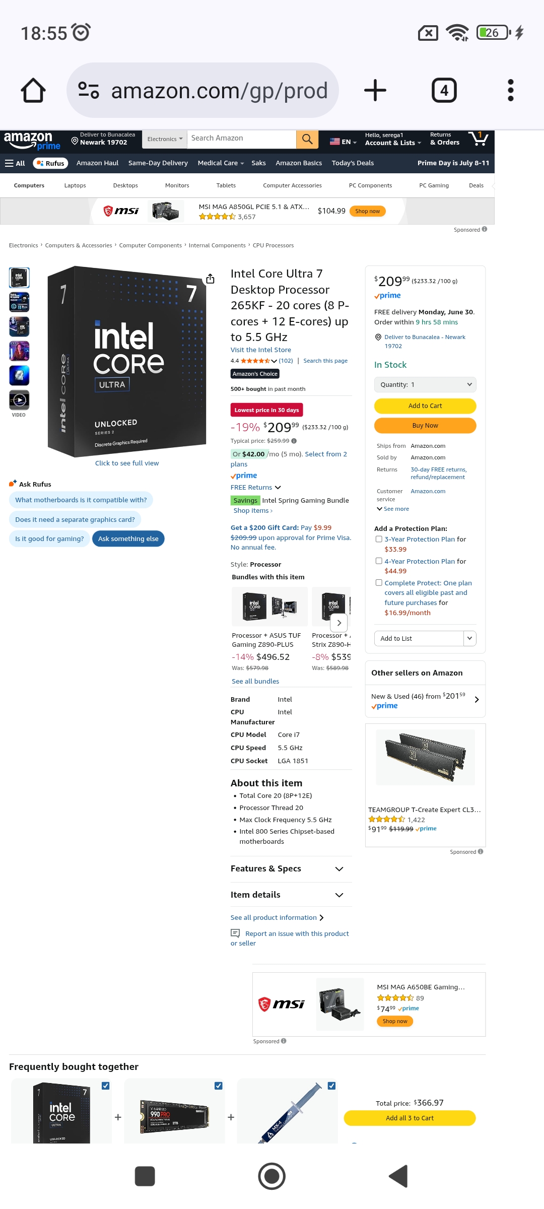 Смотрю что Intel Core Ultra 7 265kf на амазоне подешевел до 210$