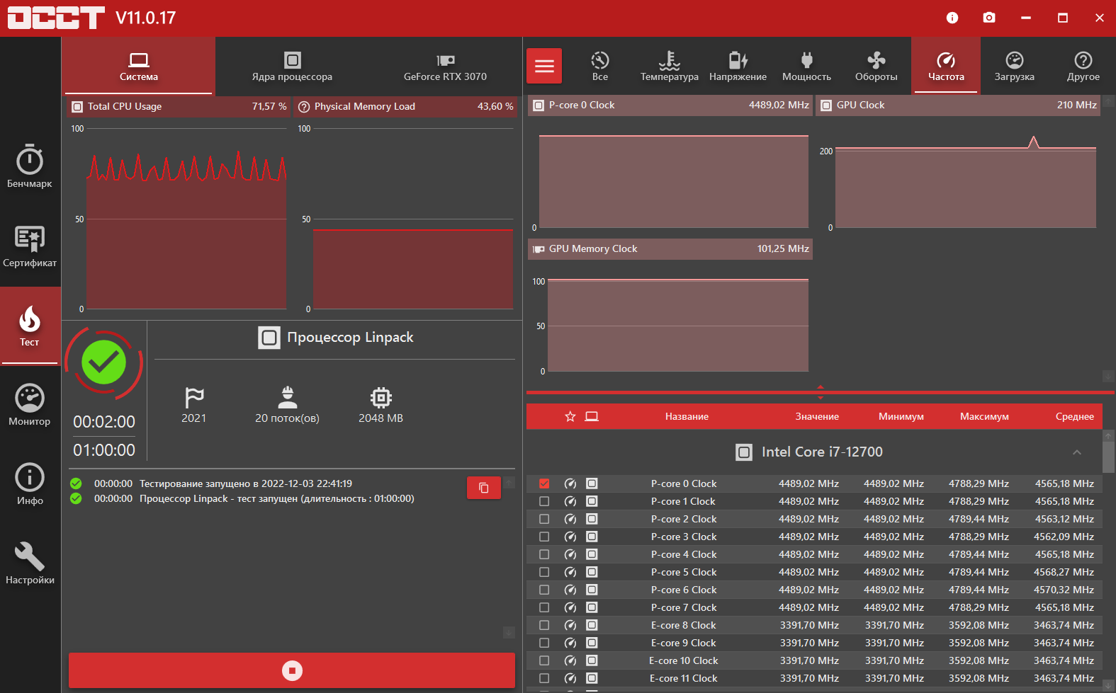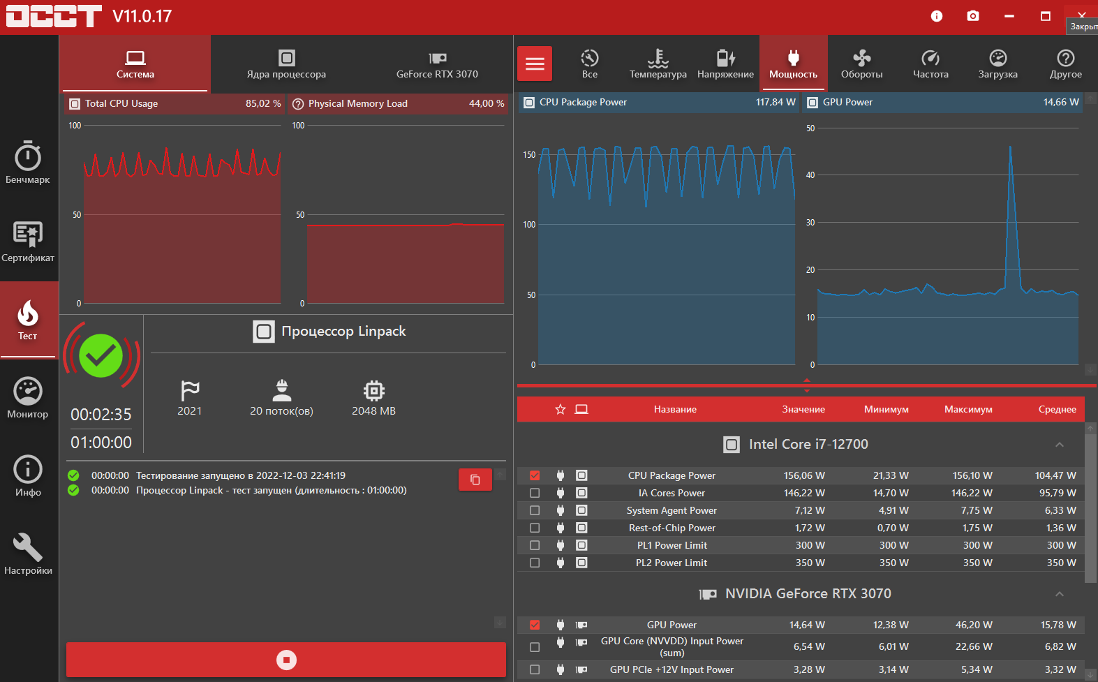 Недоумеваю... Проц 12700, мат плат MSI b660 Томогавк. По производительности вроде норм, например CPU-Z выдает ~750 и ~8800 (до эталонных не хватает немного скорей всего из-за памяти в 3600Мгц 18-22-22). НО! любой мониторинг(айда64, HWmonitor v1.48) дает показания мощности потребления не более 83Вт! В биос стоял профиль охлаждения Водянка(более 400Вт), сменил на Тауэр (200Вт с чем-то вроде). Результат один всегда. До 83Вт только нагрузка FPU в айде64 жарит, при этом частота 4500Мгц стабильно. Температуры 70-80. Подскажите, пожалуйста, в чем проблема? Это мониторинг врёт, или реально проц зажат?