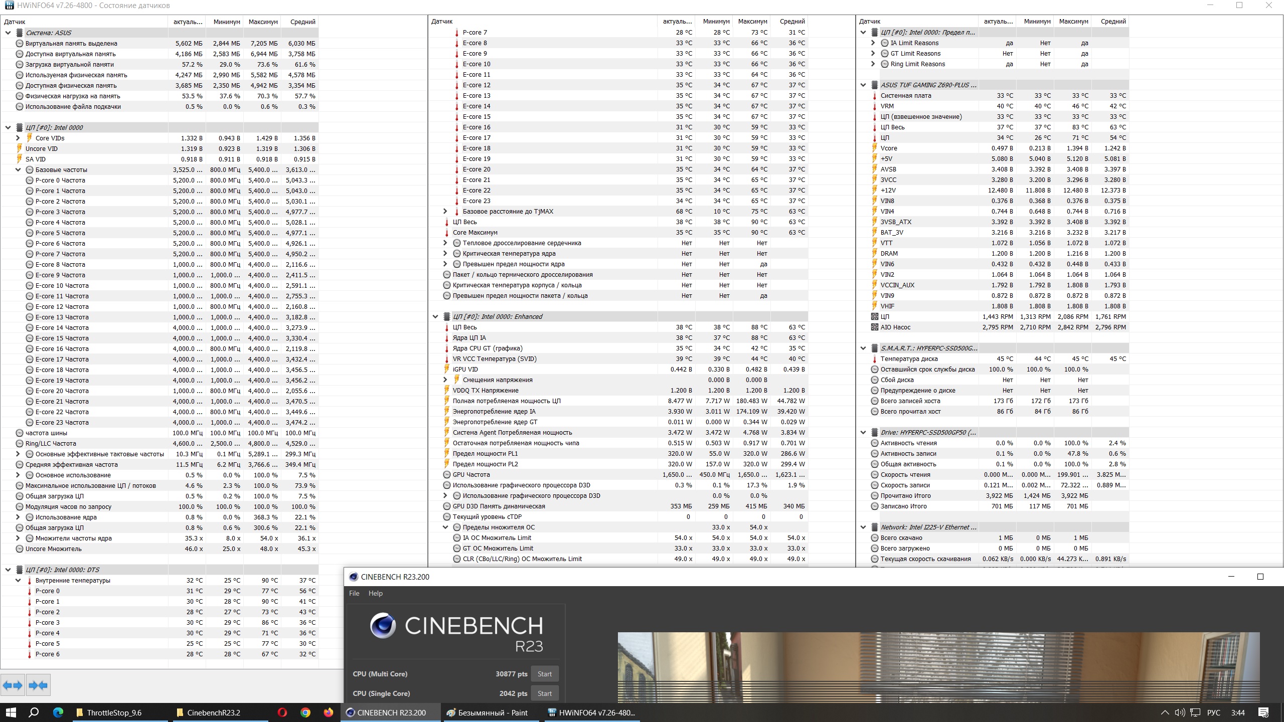 В Hwinfo должен в cinebench только Max Turbo limit throttling гореть, на ASUS я помню еще MAX VR Limit горел в Ring и GT