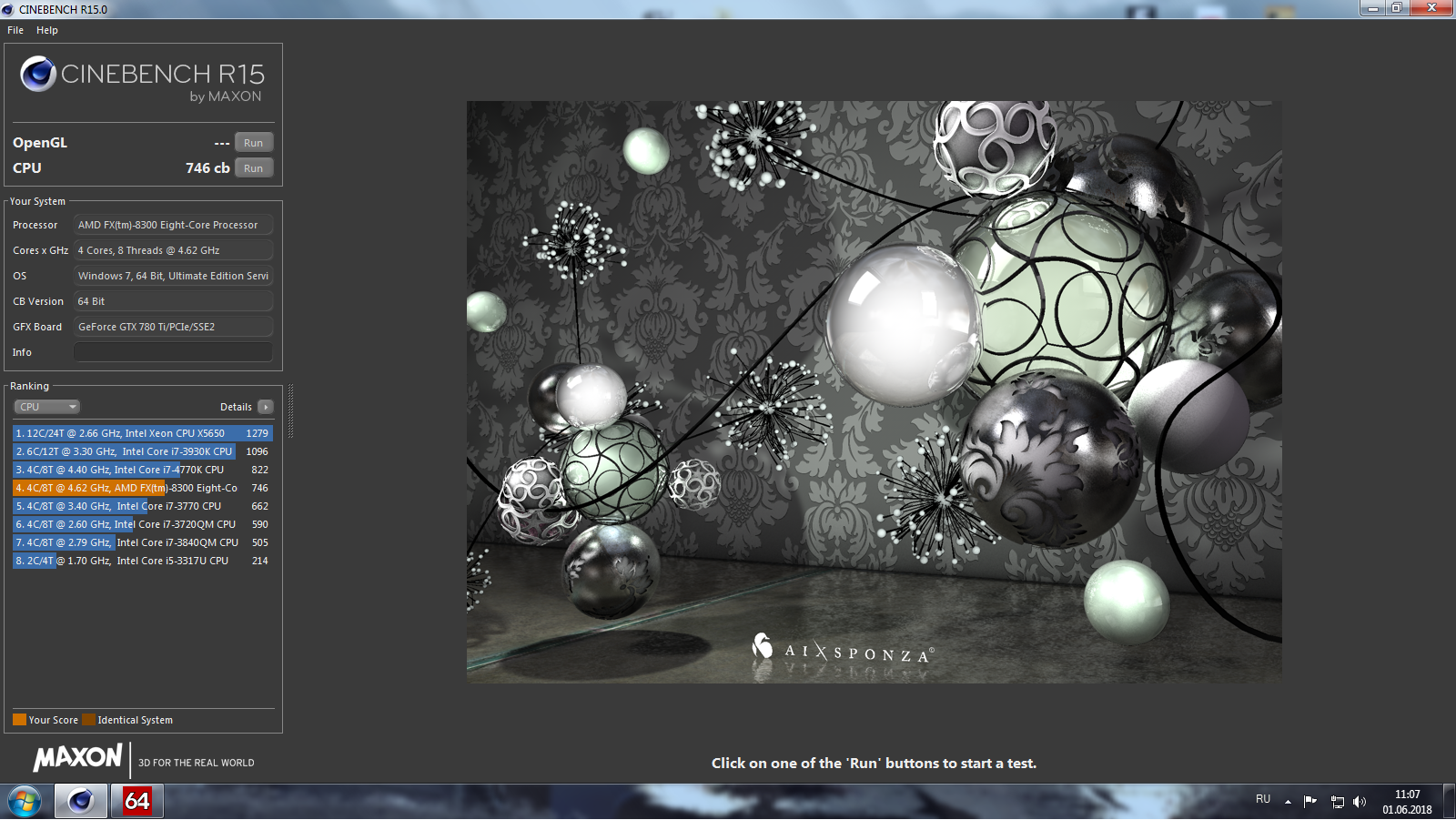 Для неверующих Cinebench на 4.6ГГц 1.3в (в полной стабильности не уверен, т.к. погонял только этот тест несколько раз, но оно мне и не надо, 4.5ГГц держит без проблем)