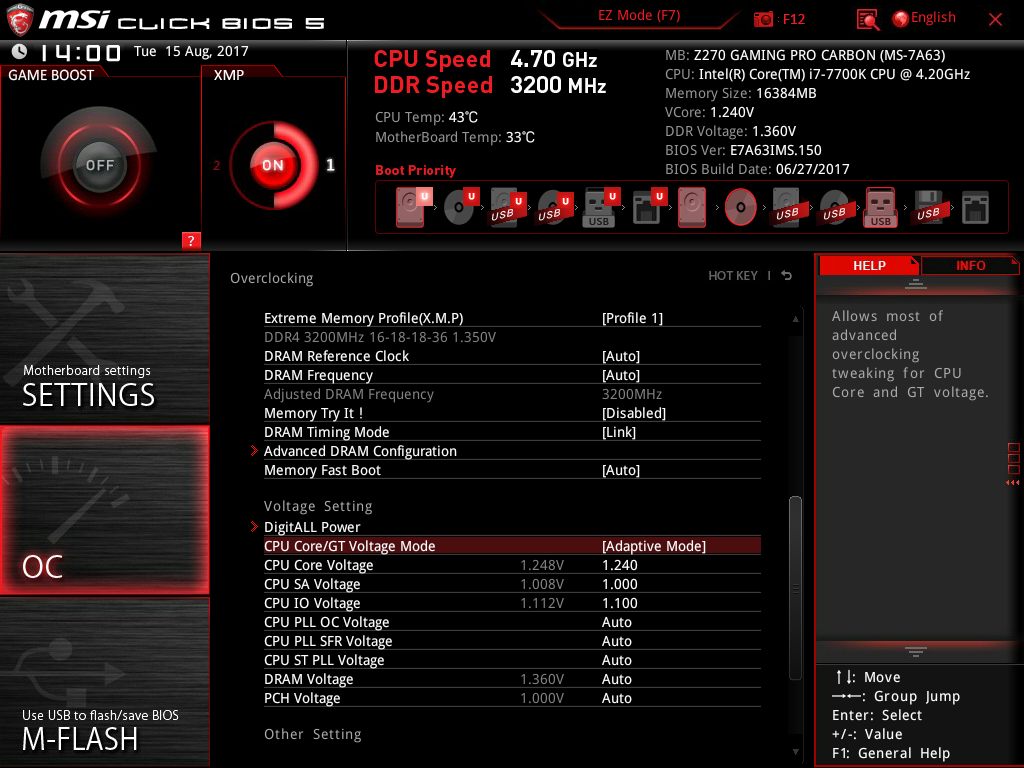 MAUZERISLT Не уверен насчет матерей MSI, может там конечно и по другому, но вообще сам режим адаптив подразумевает под собой разброс напряжения, который гуляет по оффсету и который так же регулируется. Если вы его не трогали, он стоит в авто. Именно про это я и говорил. Даже не знаю как относиться к режиму адаптив без оффсета И еще проверьте наличие нового биоса, у меня тоже на старом адаптив регулировался с шагами 0.005 , после новенького летнего биоса регулировать можно 0.001, что значительно удобней