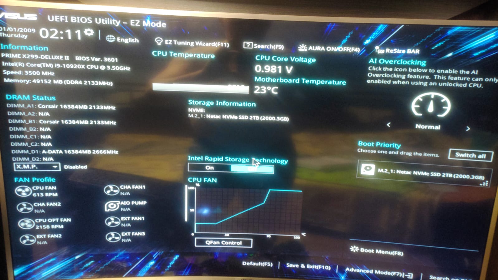 Так понимаю у вас 5 планок оперативной памяти установлено? Но в BIOS определяется только 3. Планки по объёму одинаковые? Вытащите 1 планку (которая с подсветкой) с левой стороны от процессора, чтобы осталось 4, а не 5. Проверьте как будет определяться в BIOS.
