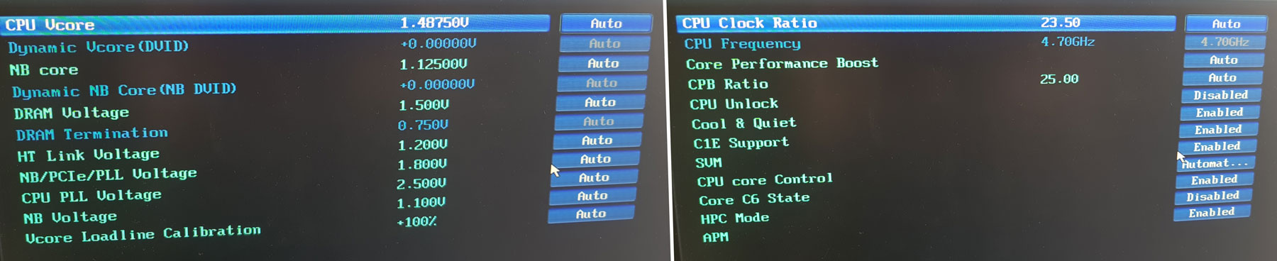 Добавлено спустя 17 минут 54 секунды: добавляю текущие настройки биоса подскажите пожалуйста какие напряжения поднять для теста стабильности