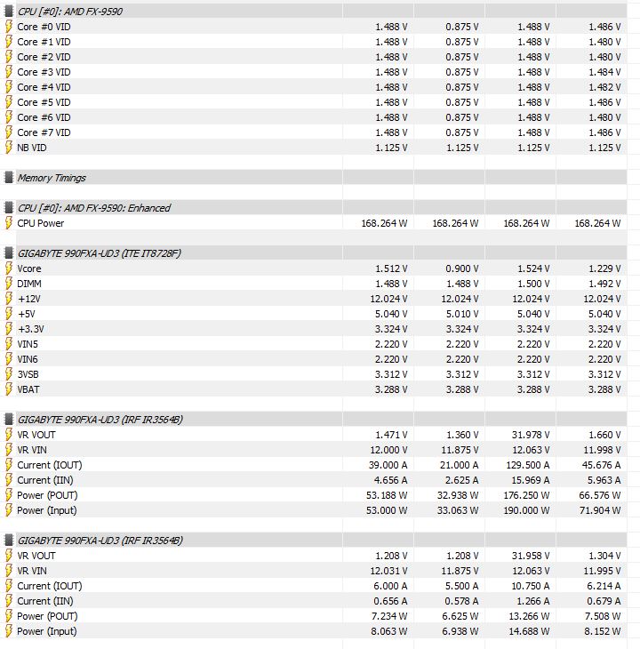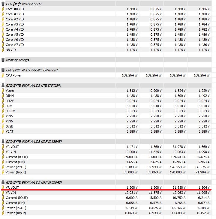 baxok а какие конкретно 3 видюхи(полная модель)? Сколько лет БП? Материнке и так сложно с таким камнем,а вы еще и принудительный обдув ВРМ не обеспечили? Для начала выставьте все напруги по номиналу,что бы не было АВТО,а то материнка может с дуру напругу закидывает в космос,вот и висяк. Судя по скрину,нагрузки толком не было,а врм уже в хорошем нагреве,а чуть больше нагрузки и КПД безбожно падает. Думаю дело в материнке. ИМХО