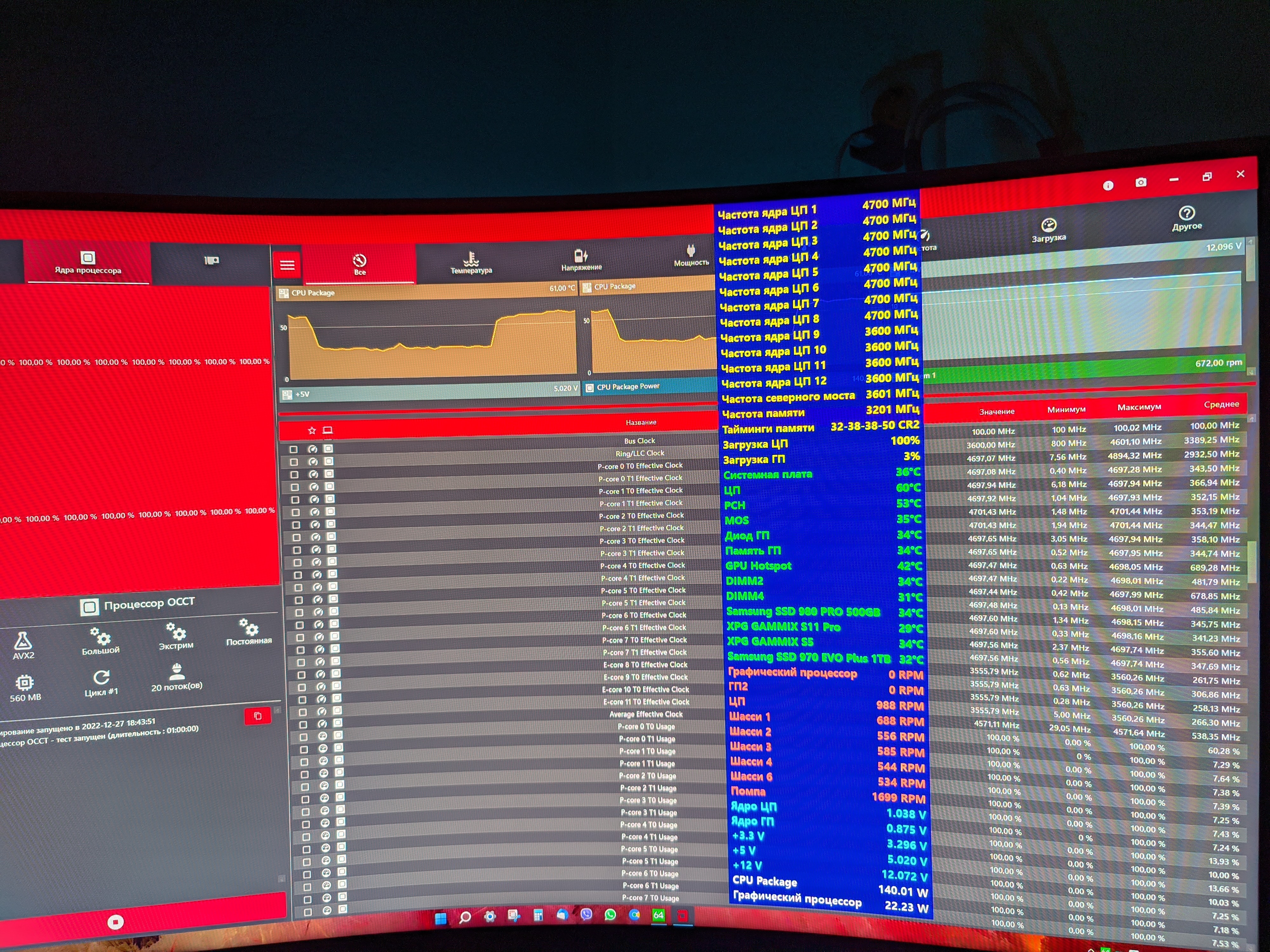 Тестирование: 1 час OCCT (переменная экстрим), полтора часа TestMem5 (Extreme1@anta777) , 12 прогонов подряд мультипотока Cinebench r23 , неделя игр. По температурам: 2 часа bf2042 самое горячие ядро 77гр. 12 прогонов Cinebench r23 самое горячие ядро 91 гр.