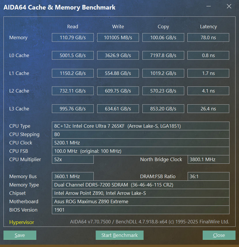 Железо: Процессор 265KF, память G.SKILL Trident Z5-7200, мать ASUS ROG MAXIMUS Z890 EXTREME (1851), Видео RTX-5080, ОС-Вин11-24Н2-IoT LTSC Enterprise (26100.4652).