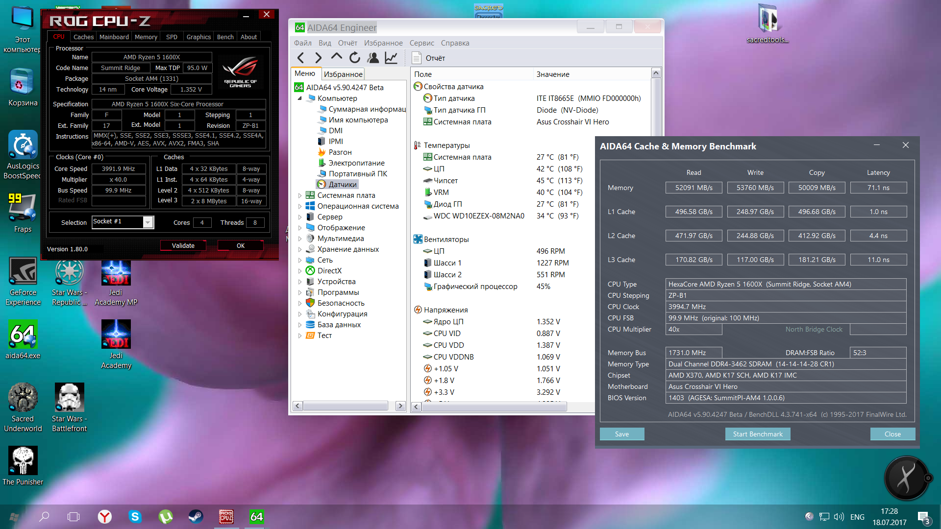 Ryzen 7 1700X является средним звеном среди Ryzen 7. Хороший выбор для тех, кто не может разогнать 1700, т.к. не сильно дороже, но с заметно большими частотами.