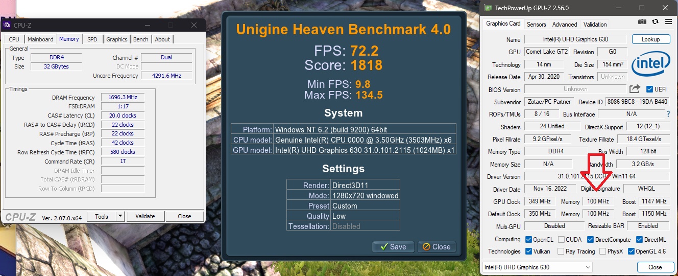 Привет товарищи. Вопрос по встройке UHD630 на i5 10600k в Zotac ZBox Magnus One ECM73070C/53060C В GPU-Z память UHD630 отображается 100MHz - что за прикол? В Bios что-то...?