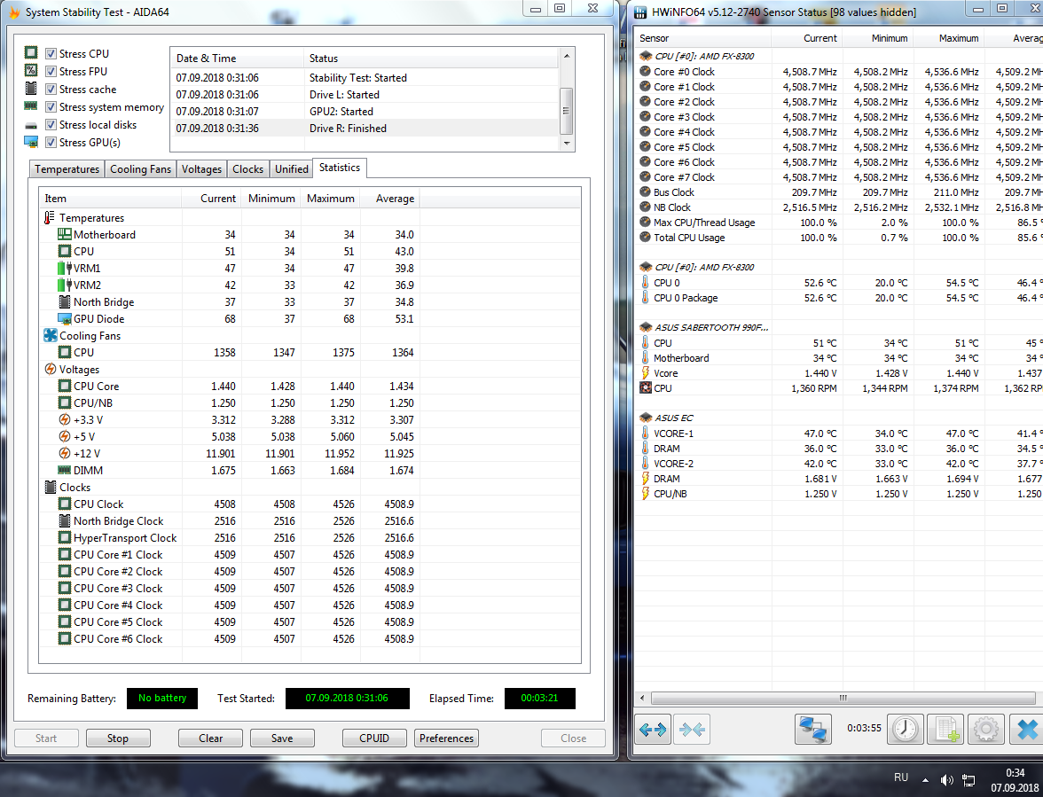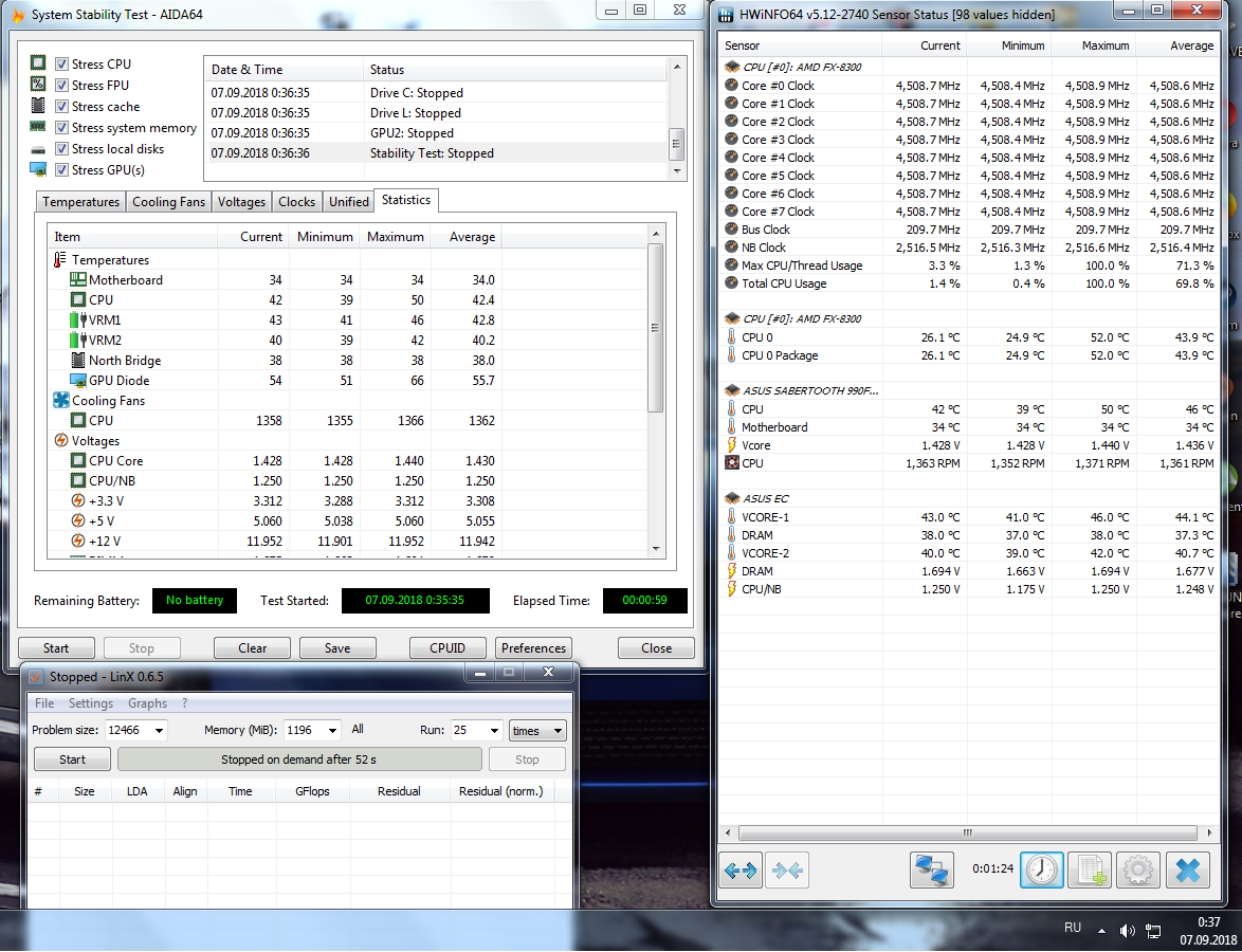 А вот тебе нагрузка аида+линкс,хвинфо опять глюканул,а в аиде все нормально