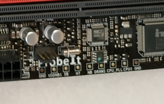 Так, ну, смотрю, у меня все даже есть для удобства (фото выводов для щупов мультиметра на материнке в аттаче). Опыта в схемотехнике у меня немного, поэтому лучше спрошу. Минус на землю и какие из выводов промерить в первую очередь после получения стабильности, чтобы убедиться, что нахожусь в безопасных значениях напряжений?