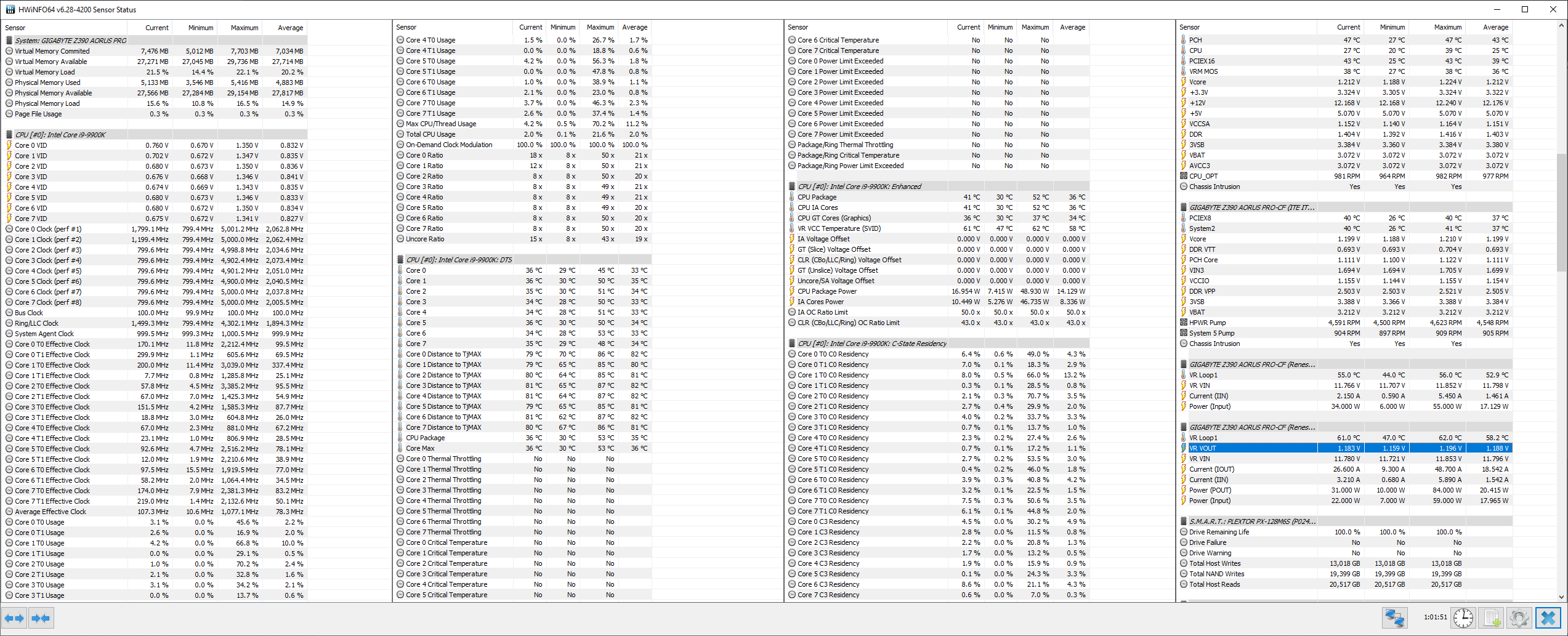 у меня в авто с llc 5 в нагрузке колеблится напряжение в пределах 0.01v, 1.2-1.208v, в простое падает до 800мгц с 0.7v, хорошо что не взял гигу, хотя тоже посматривал на GIGABYTE Z490 GAMING X