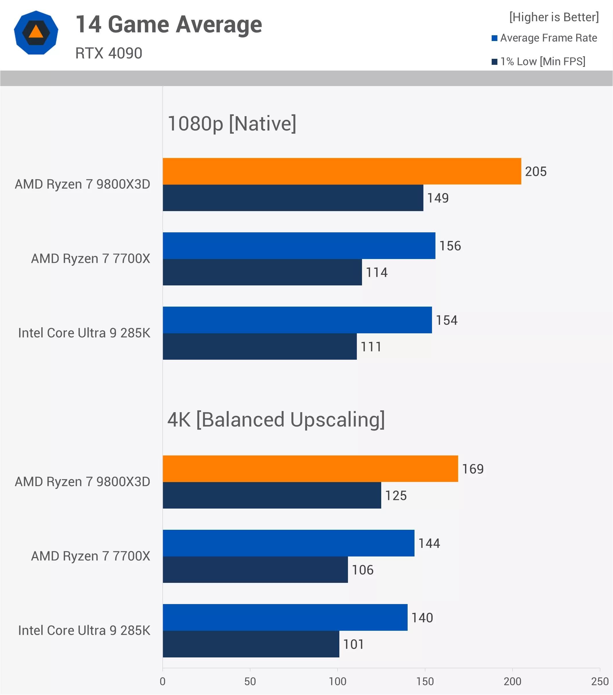 Даже если рассматривать игровую производительность в 720p , то новое поколение не выглядит плохим . Разница в среднем между ultra 7 265к и 13900к/14900к/14700к до 10% в среднем , что с учётом надёжности и гораздо меньшего потребления , то на фоне предыдущего поколения новое поколение смотрится не плохо: