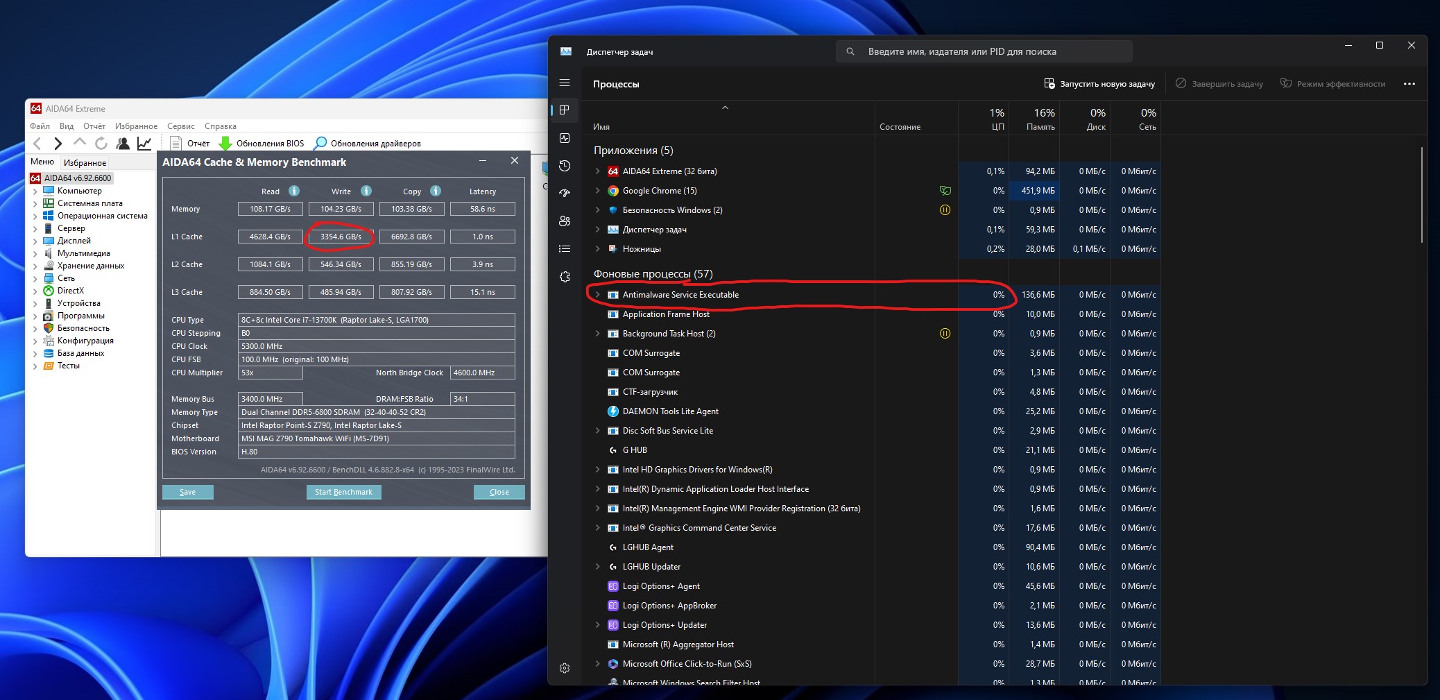 Подскажите, пожалуйста, загнался таким вопросом i7-13700K и MSI MAG Z790 Tomahawk, почему L1 write cache 2700, когда мой же проц на всех обзорах 3300 и даже получилось снять мой проц и поставить товарищу на его MSI MAG Z690 Tomahawk - и у него 3300, почти 3400! Где косяк у меня? Спасибо