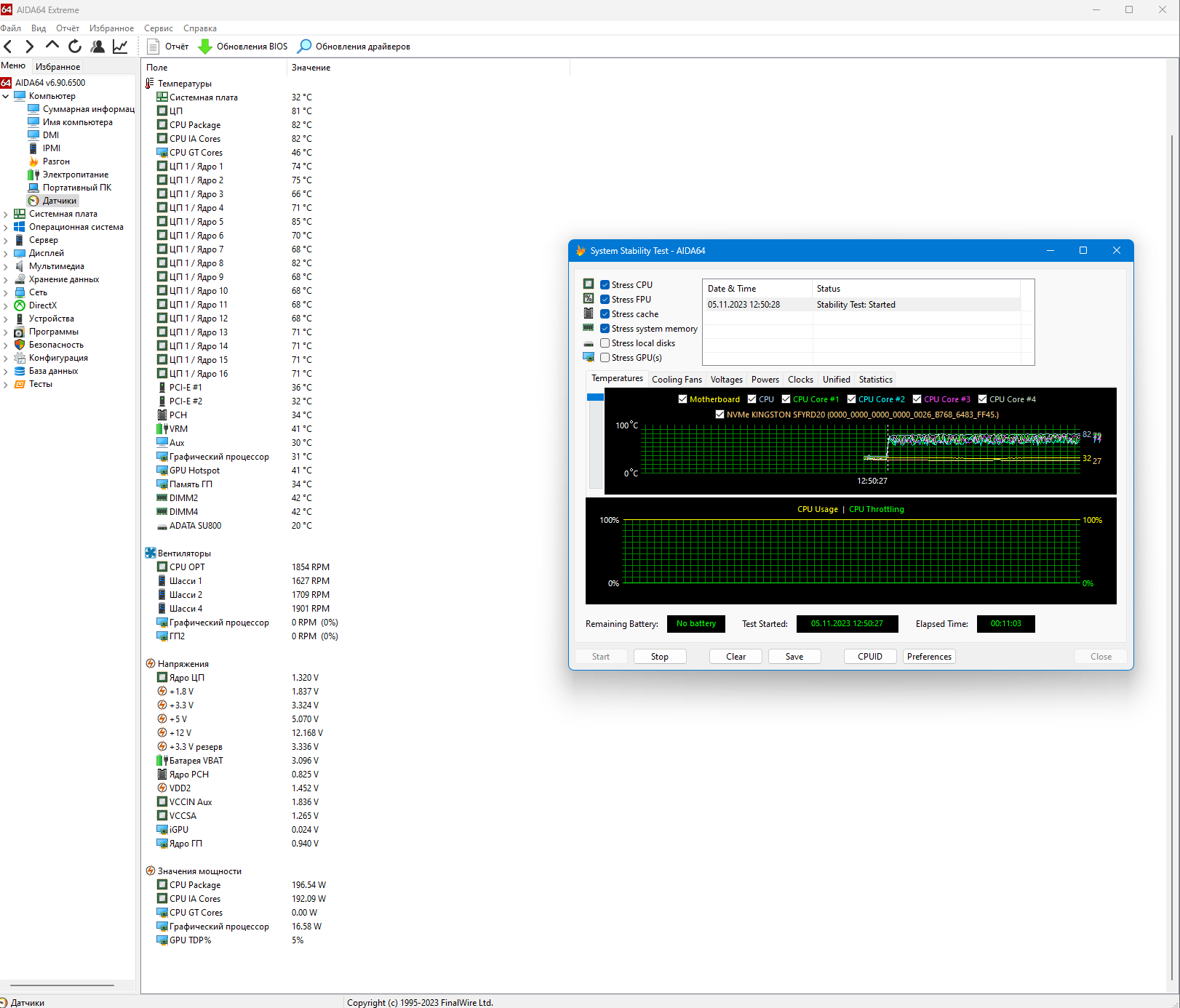 башни нет - есть вода. для теста вентили на максимум запускал 14 шт (включая 6 по 140 push to pool arctic 420 - спереди на вдув; боковые 4 по 120 на вдув; верх 3 по 140 и зад 1 по 140 на выдув;) + на память 2 по 60 от ALSEYE) , температуры железа, да не высокие, но это заслуга материнки и продуваемого корпуса ( у меня есть второй комп, на Z690 Aorus Pro, вот там компоненты материнки имеют значительно большие температуры (VRM, PCH прилично выше)) термопаста MX 6, windows 11 23H2, на счет напряжений не подскажу (могу сказать только, что это проделки вашей материнки)