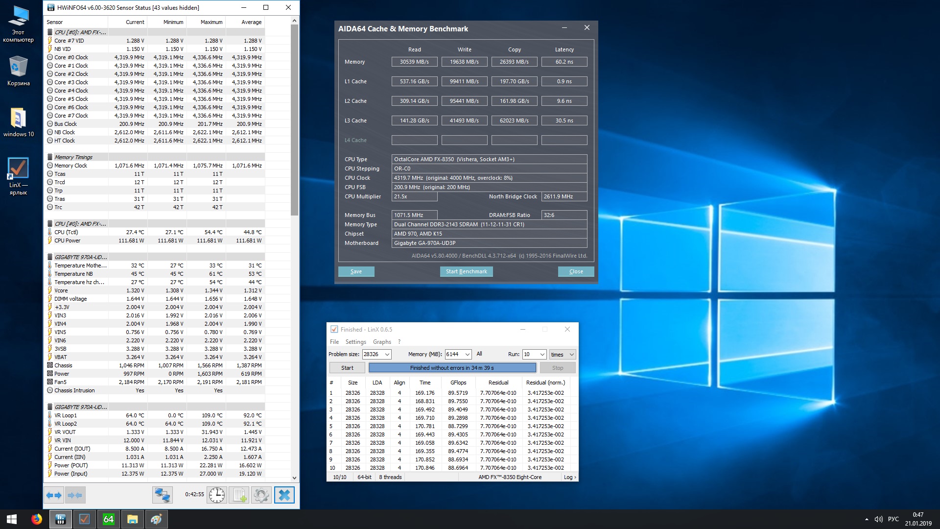 Спасибо ребят что подсказали напруги скинуть! Решилась проблема со сбросом частоты убавлением на cpu (1.368v до 1.32v) , cpu-nb (1.35v до 1.333v). Есть вопрос по hwinfo64 , Датчик VR VOUT показывает cpu-nb на гиге у меня. Значение скачит с 1.333v -> 31.943v глюк мониторинга? И от чего зависит Gflops, то у многих смотрю под 100ку. Скрин приложил.