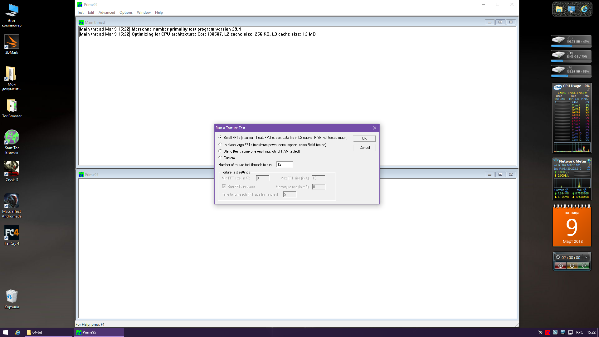 LinX должен быть настроен следующим образом: Задаете режим 32 либо 64 бит, объем задачи = 25000 (не меньше 25000), количество проходов = 10 (не меньше 10).