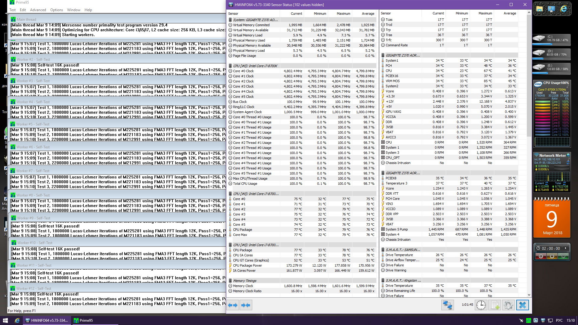 Решил сегодня прайм покрутить на предмет стабильности и смог часовой тест 4800 пройти только на 1.27в. Вообще этот тест довольно суровый вариант, было даже час проходит, стоит только мышкой пошевелить и валиться одно ядро с ошибкой. И грузит он почти как линкс, а врм грузит гораздо сильнее почему то, у меня 85 градусов пока мониторинг не заглючил, когда под линксом градусов на 10 ниже. Так что рекомендую попробовать, если мать конечно с нормальными питателями и не страшно пальнуть.