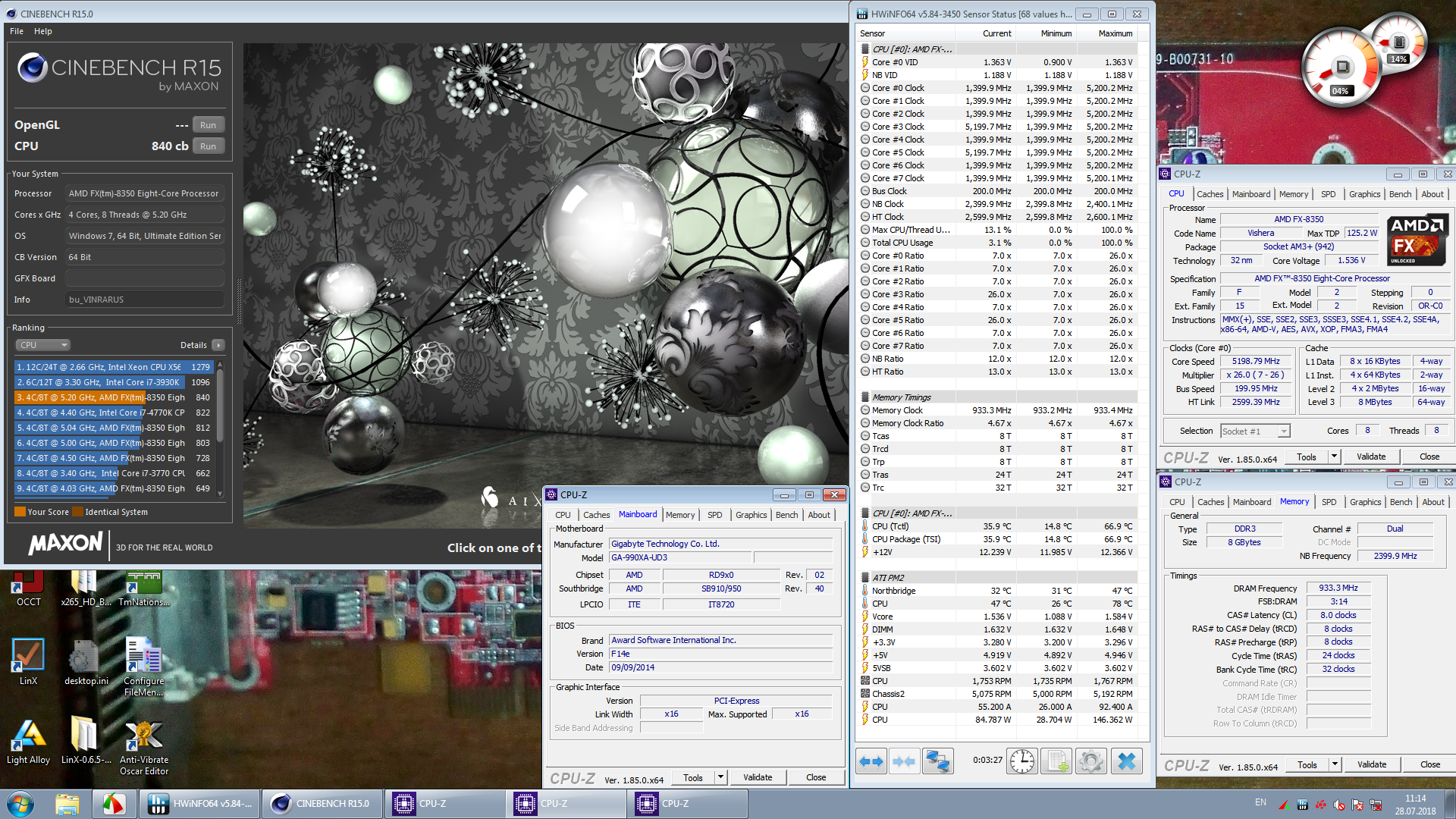 на этой частоте мидл-асус с отключенным llc M5A97 R2.0: