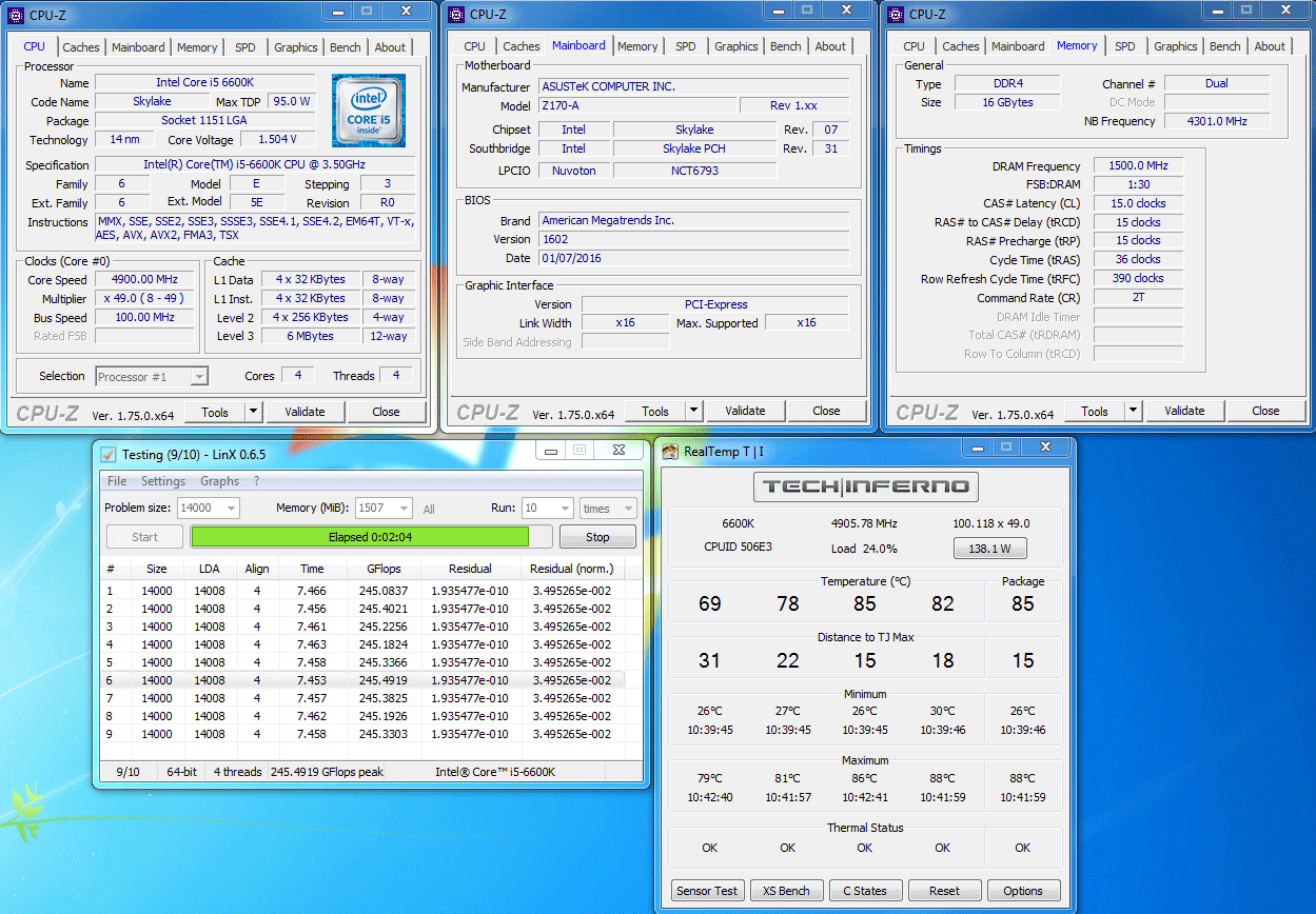 Брат! я только линкс верю и тестирую для меня план минимум менее 90 градусов в линкс последнем, 240+гигафлопс чтоб не кукурузило. В играх у меня на 4.5 при игре на ВСТРОЙКЕ 55 градусов, т.е с видяхой будет еще ниже будьте осторожны ребята! процессоры ДЕГРАДИРУЮТ если напруга высокая и жаровня, лучше стабильные холодные 4.5 или скальп, чем кукурузные 4.7-4.8 и деградация у меня сенди бридж сдеградировал за 5 лет с 1.35 напруги на 4.5 до 1.4!