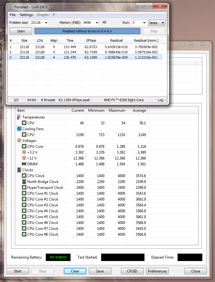 питальники не вылетали (мы тут их дополнительно охлаждаем), но вот на некоторых матерях в операциях с плавающей запятой - линпаке (т.е. при высоких нагрузках) сбрасывается напруга в дефолт на cpu/nb.
