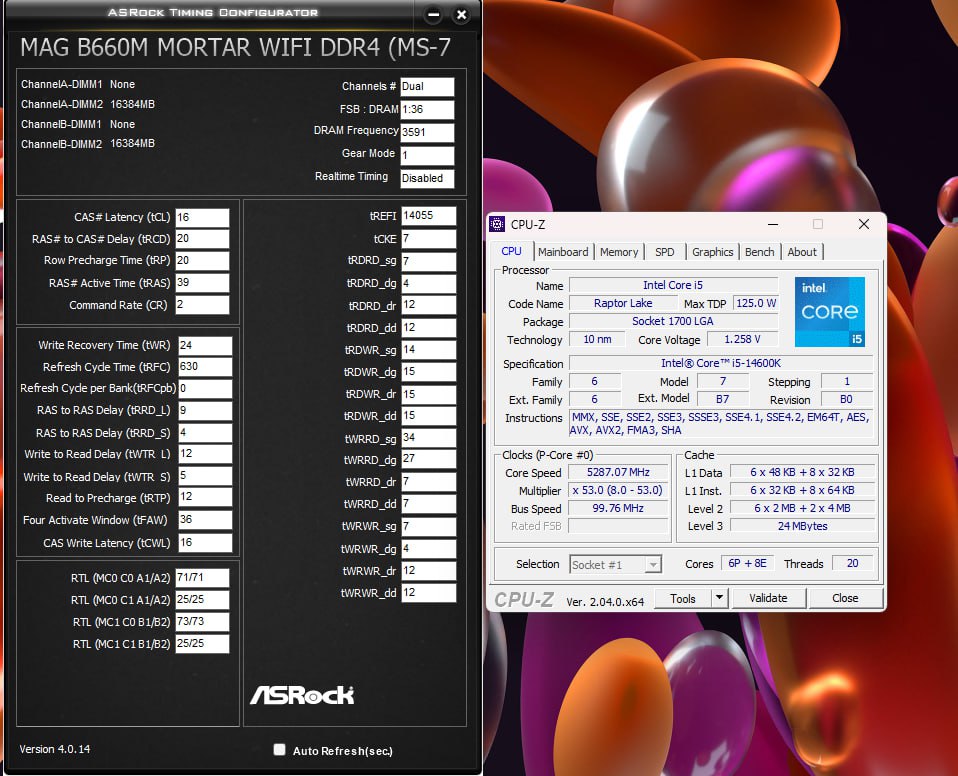Я вчера тоже поставил 14600к. Без андервольта Vcore 1.32в... Пока руки не дошли норм всё настроить. Но уже понимаю, что нужно переезжать на "З" чипсет. Даже тайминги не подбирал на г1 ддр4. Просто установил пресет на 4000 мгц, прогнал коротенький мем тест при SA 1.2в.