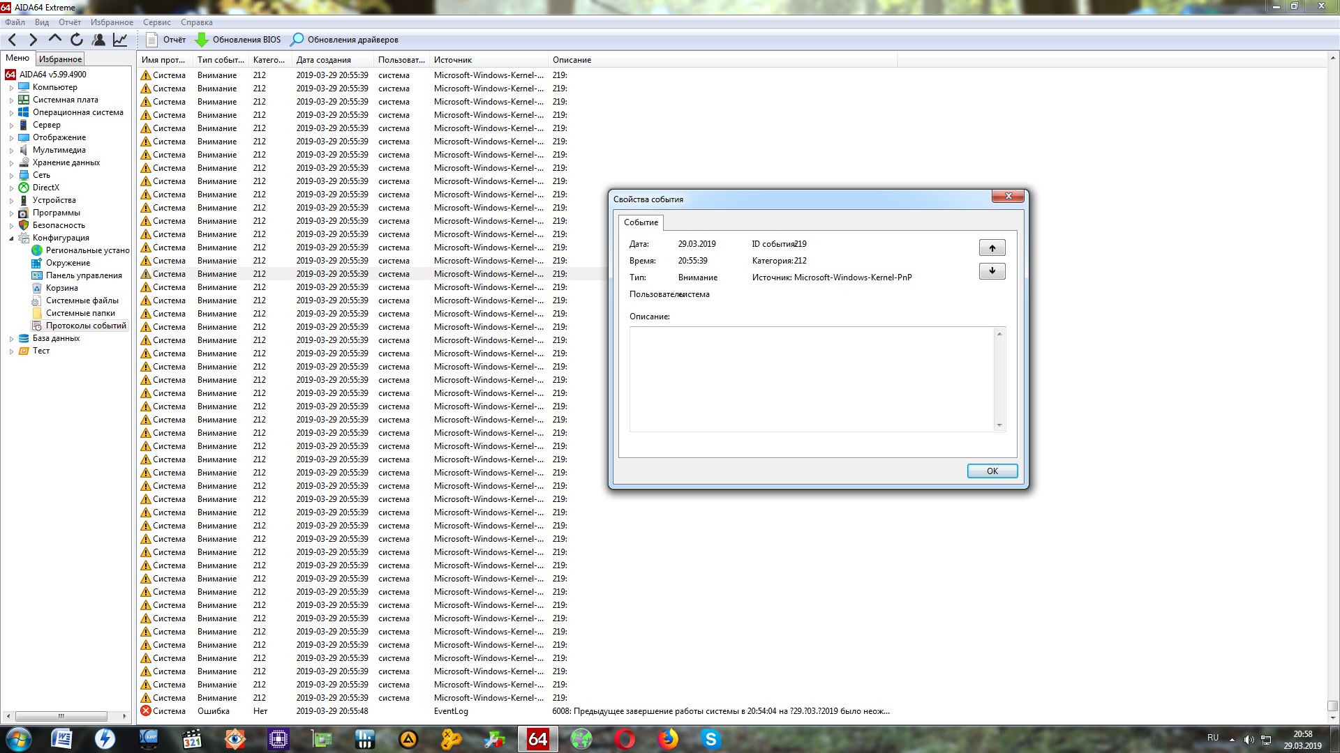 только что,спустя пару месяцев,нашел возможную причину моей 211/219 ошибки и возможно из-за нее и зависание системы так как написал выше - флуд этой ошибки в журнале идет перед зависанием... ASUS Ai Charger от асуса которая быстрее заражает юсб девайсы,и которая у меня установлена всю жизнь пытается найди дрова безуспешно то ли для зарядки юсб клавы то ли для зарядки просто воткнутого в юсб шнура от айфона...снес ее... ставил ее лет 5 назад когда контроллер 3.0 и сетевуха платы сгорели после грозы и некачественной сети интернета..