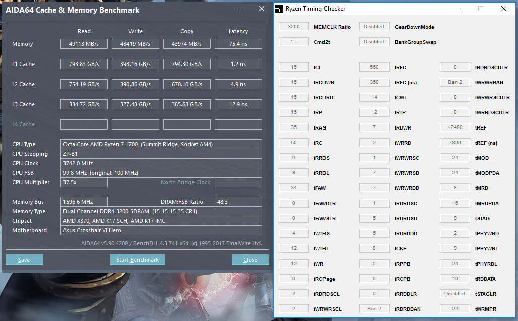 Прошу помочь. Не удалось запуститься стабильно на частоте 3466 на ОЗУ G.Skill F4-3200C15-16GTZ, две плашки по 8 на B-die чипах, 1 ранк. Шёл по гайду от 1usmus. Пробовал ставить ProcODT на 48, 53.3, 60, включать Gear Down Mode, ставил тайминги материнки, ставил тайминги из XMP и гайда, напряжение по датчикам на SoC 1.10, RAM 1.395 Система запустилась всего один раз, и начала сыпать ошибками в TestMEM5, после чего вообще вырубилась. Система стабильна на DOCP Standart 3200, но хотелось бы взять 3466 с годными таймингами, или хотя-бы на 3200 тайминги нормально настроить.