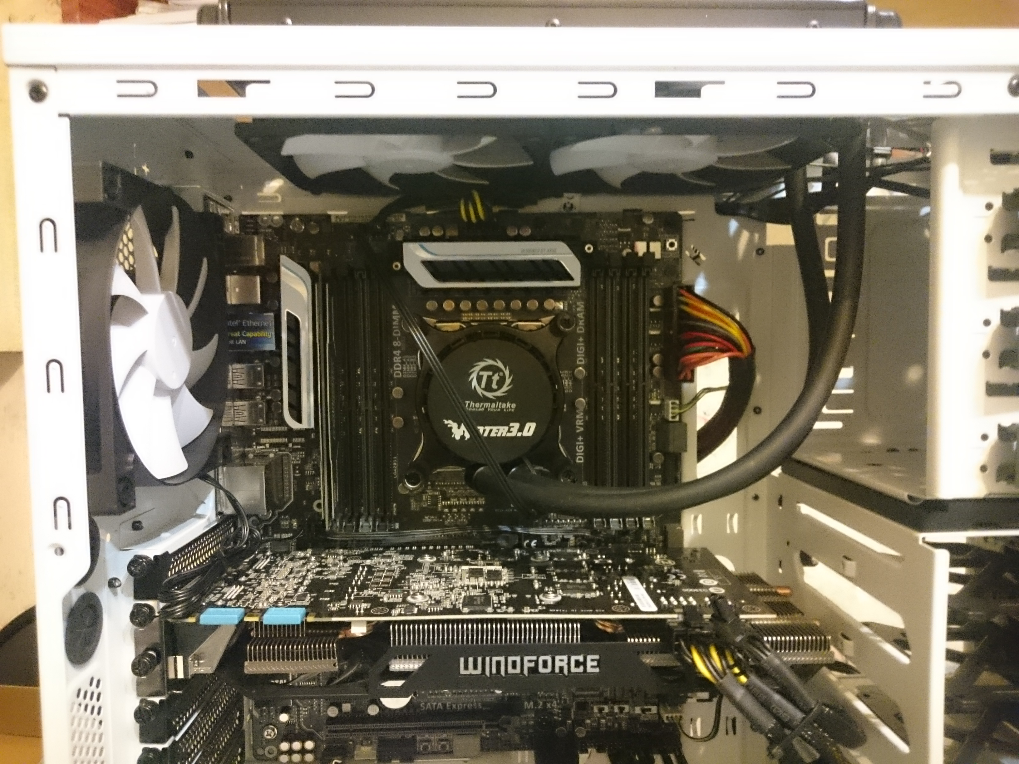 Из корпуса, корпус NZXT Phantom 240, на вдув спереди два фана, снизу один, бп изолирован получается, и на выдув вот сзади на стенке и сверху под радиатором. Отдельно для VRM думал что-нибудь наколхозить, но вообще вариантов не вижу. Разве что думаю развернуть с задней стенки фан и сделать на вдув.