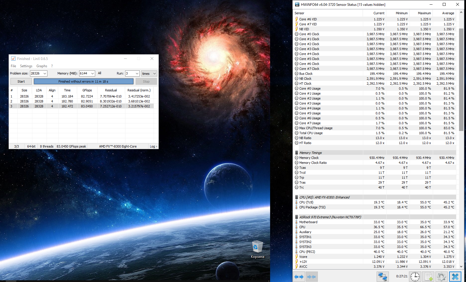 Litoy.88 невязка в смысле попугаев мало ? Задержка у памяти большие получились для такой частоты. Но можно в принципе попробовать и добавить. Это не вид показывает, а установленное в биос текущее напряжение, в стоке он запускается при 1,15. Сокет с обратной стороные обдувается 120мм корпусным, на процессоре TopFlow с двумя вентиляторами и отдельно еще северный мост обдувается.